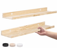 Q: What are the dimensions and weight capacity of the 24 Inch Natural Pine Wood Floating Shelves?A: Each shelf measures 24×5.1×2 inches and can bear up to 11 lbs. The set includes two shelves, making them perfect for various display needs.