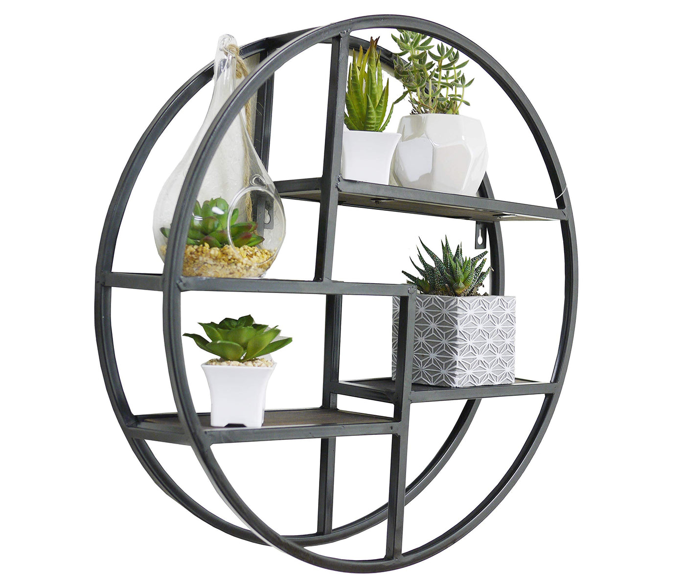 Admired By Nature, 18'' Mounted Iron Circle Hanging Storage Shelving Floating Shelf 4 Tier Floating Circular Wall Decor Round De
