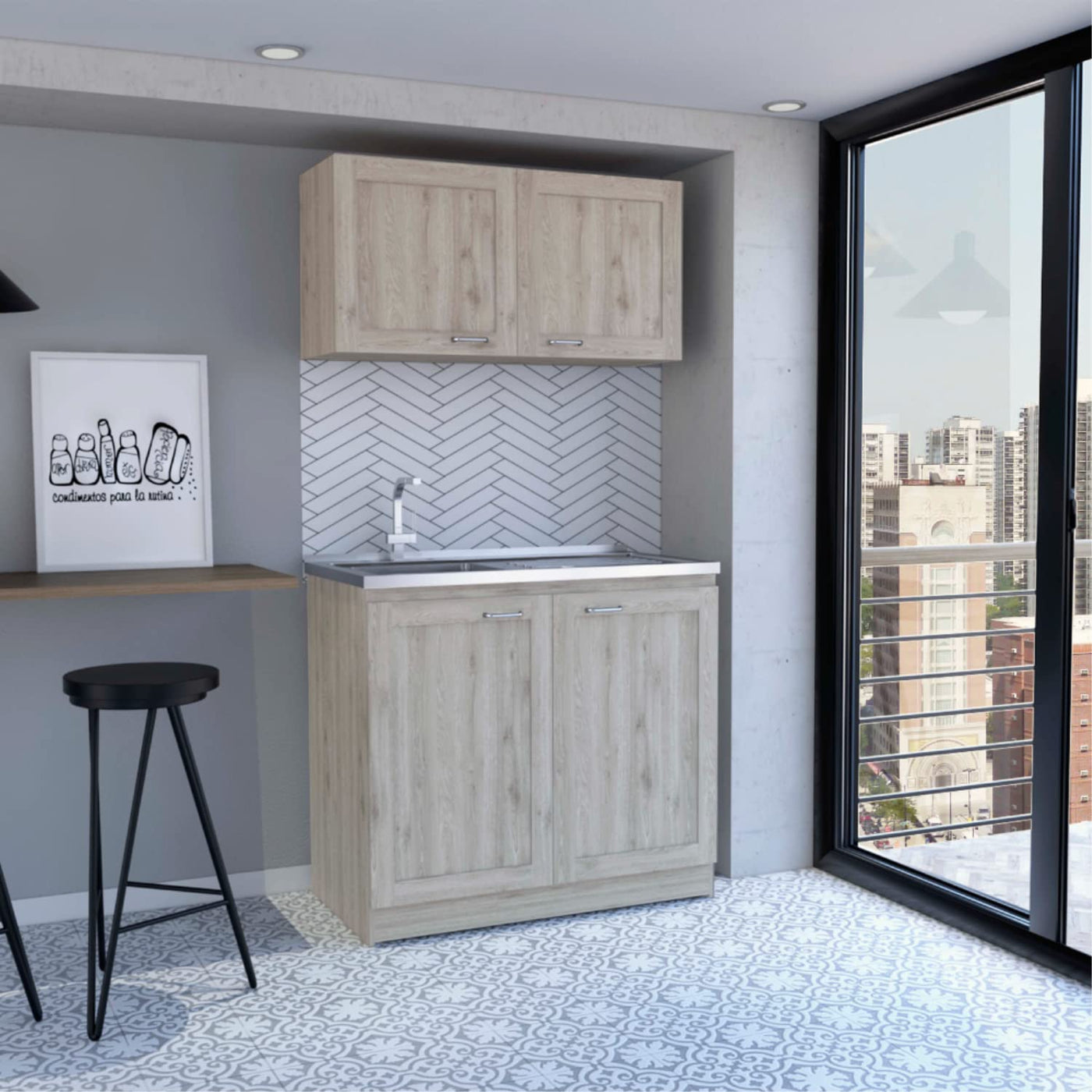 Agate Cabinet With 2 Upper Cabinets And 2 Lower Cabinets, 2 Piece Set, Light Gray