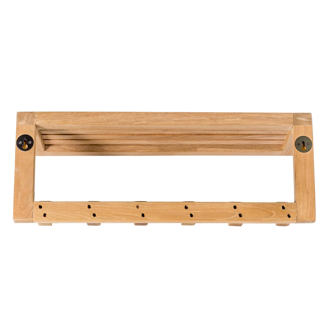 No closet at the front door? No problem. Bring function and organization to your entryway with ARB Teak’s Wall Shelf with Hooks. This piece fits into any style of decor due to its natural wood tones and its simple design. Featuring a flat upper shelf for storing hats, books or anything else you need to clear out of the way, it comes with solid square peg hooks for coats, scarves, umbrellas or bags. This shelf isn’t just good for the entryway: it can be installed in your bathroom, a closet, and even outside in the patio.