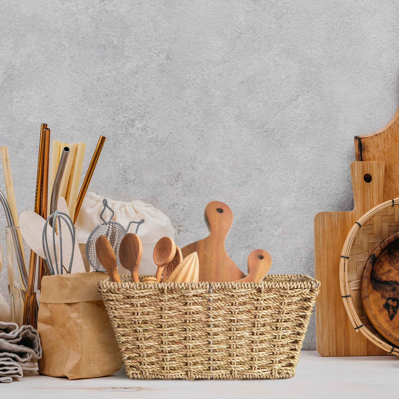 Q: What materials are used to make these storage baskets?A: The Artera storage baskets are made from 100% handcrafted seagrass, which is sustainably grown and imported from Vietnam.