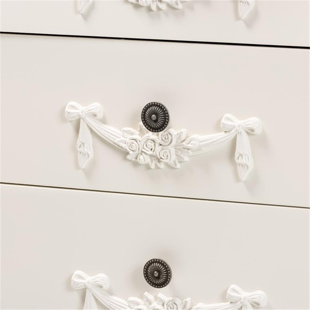 Uplift the character of busy rooms with the timeless style of the Eliya storage cabinet. Made in China, this exquisite piece is comprised of a solid wood frame embellished with metal drawer knobs. Three drawers provide ample storage space to accommodate the needs of any arrangement. The Eliya will arrive fully assembled and features cabriole legs for excellent stability and support in elegant style. Floral moldings add a graceful touch, making the Eliya storage cabinet an enchanting addition to any space.