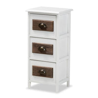 Baxton Studio Fanning White and Walnut Brown Finished Wood 3-Drawer Storage Unit