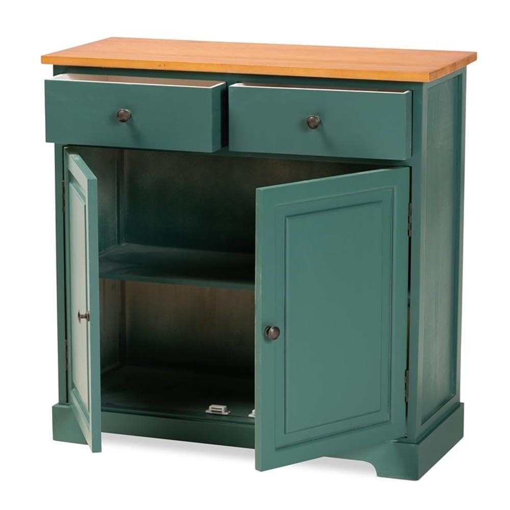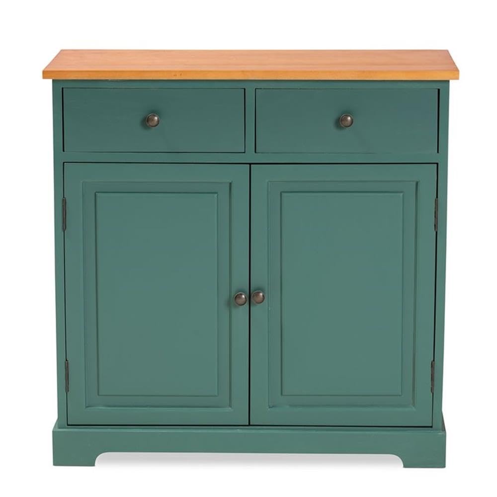 Baxton Studio Garner Oak Brown Finished Wood 2-Drawer Kitchen Cabinet
