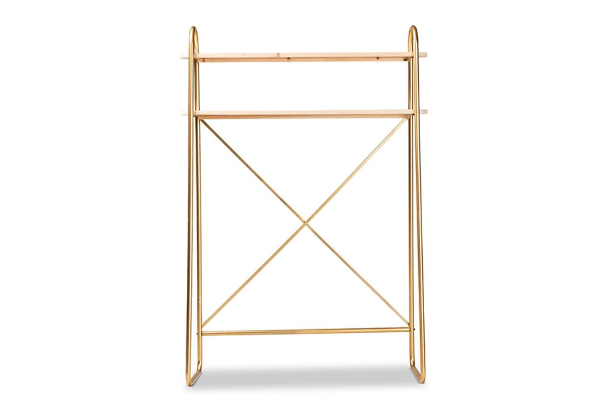 Baxton Studio Merida Gold Finished and Brown Finished 2-Tier Twin Size Shelf