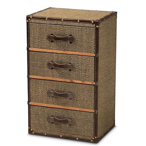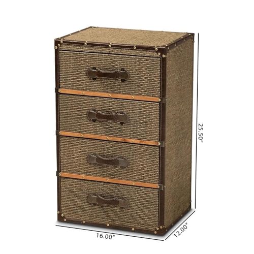 Baxton Studio Owen Mid-Century Modern Brown Fabric Upholstered 4-Drawer Accent Storage Cabinet