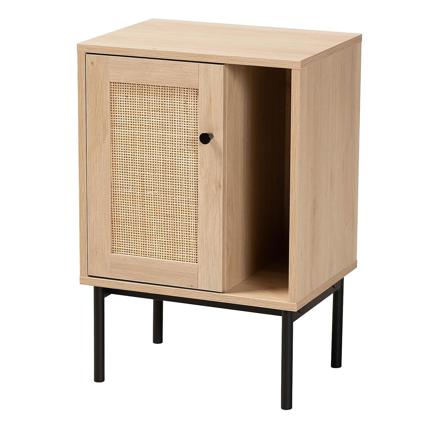 Embellish your space with the efficient mid-century craftsmanship of the Sherwin storage cabinet. Made in China, this traditional piece consists of a solid metal base topped with a sturdy wood frame. The tall open shelf at the side creates a lovely display area while the door opens to reveal two additional storage shelves. The Sherwin requires assembly and features rounded legs for excellent stability and support in delightful design. Adapting traditional charm for modern needs, the Sherwin storage cabinet is a fantastic addition to any arrangement. Due to the nature of the natural materials used in this product, it may have variations in areas such as, but not limited to, color, pattern, grain and texture. The hair-like strands of rattan/rattan-fiber are common due to nature of the material.