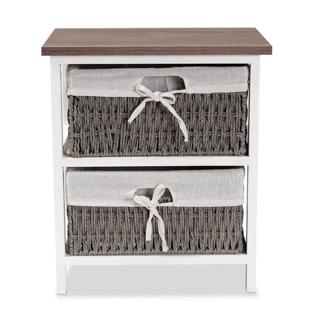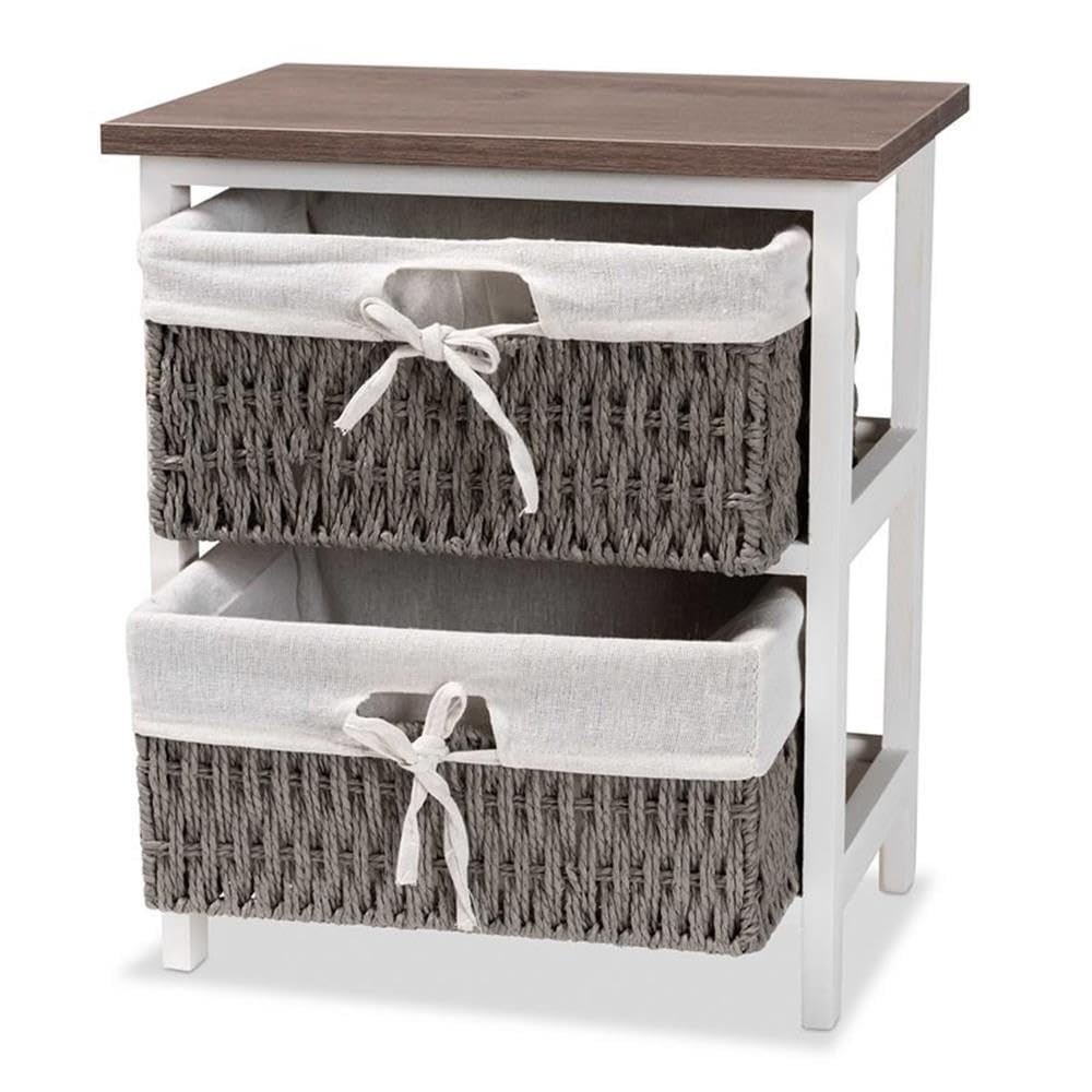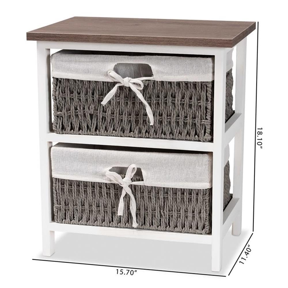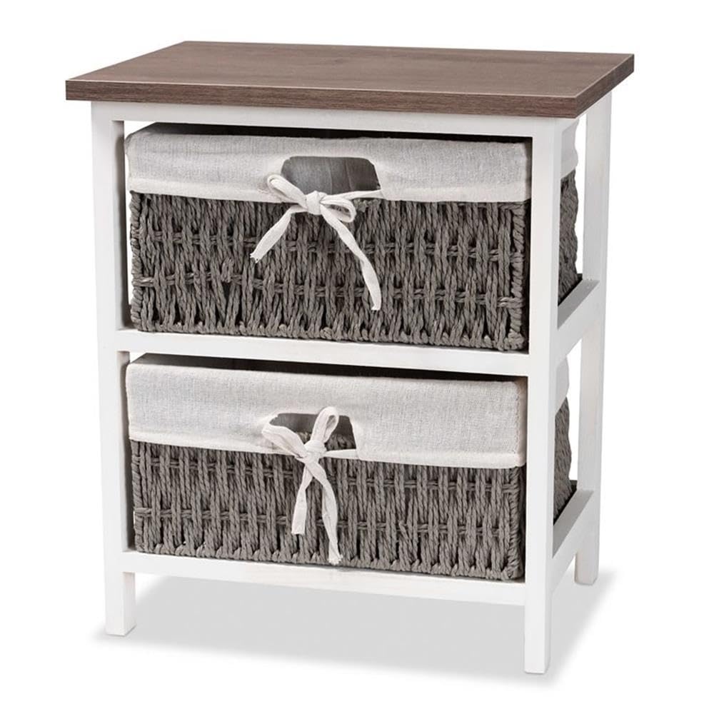 Baxton Studio Terena Walnut Brown and White Finished Wood 2-Basket Storage Unit