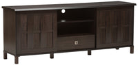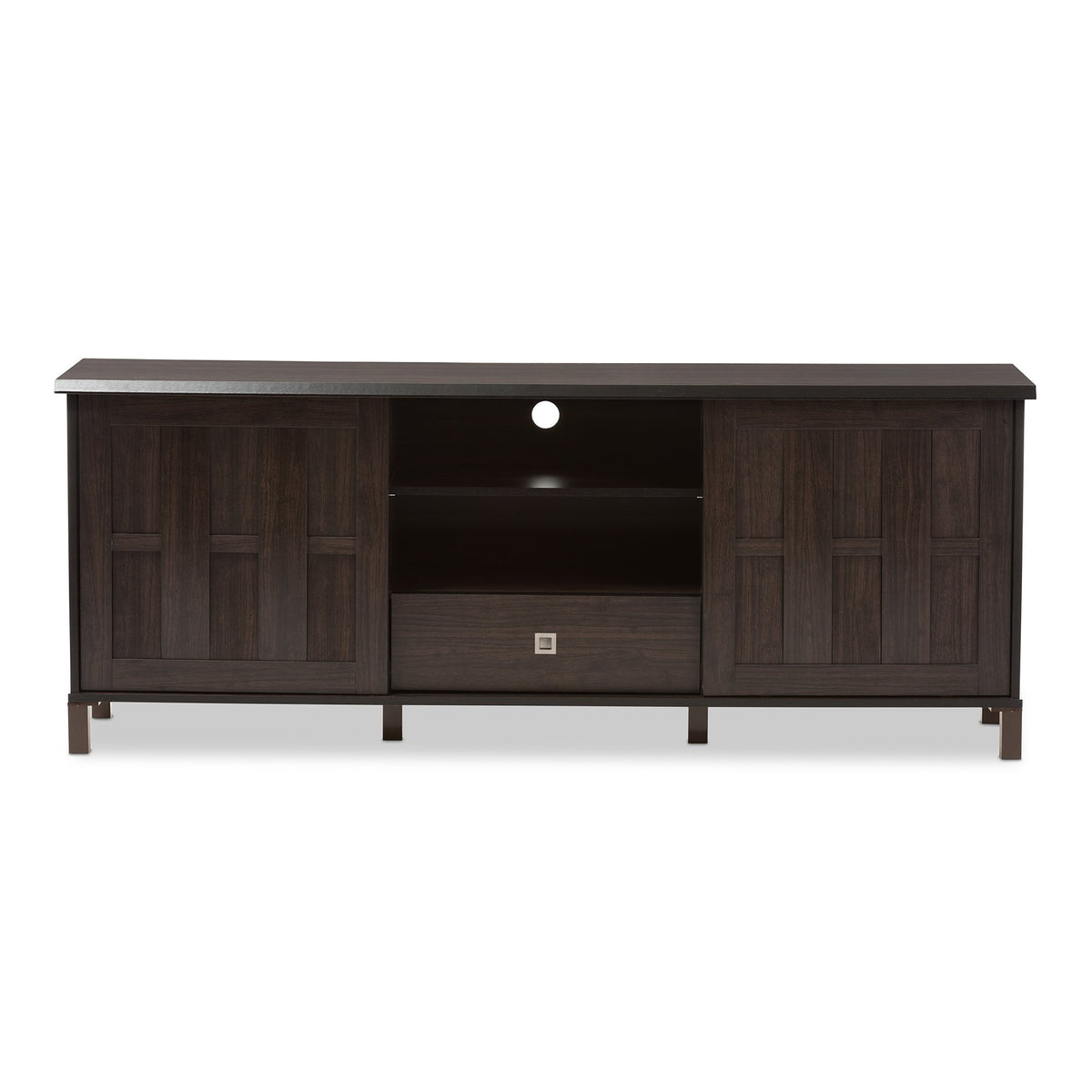 Baxton Studio Wholesale Interiors Unna Wood Tv Cabinet With 2 Sliding Doors And Drawer, 70", Dark Brown