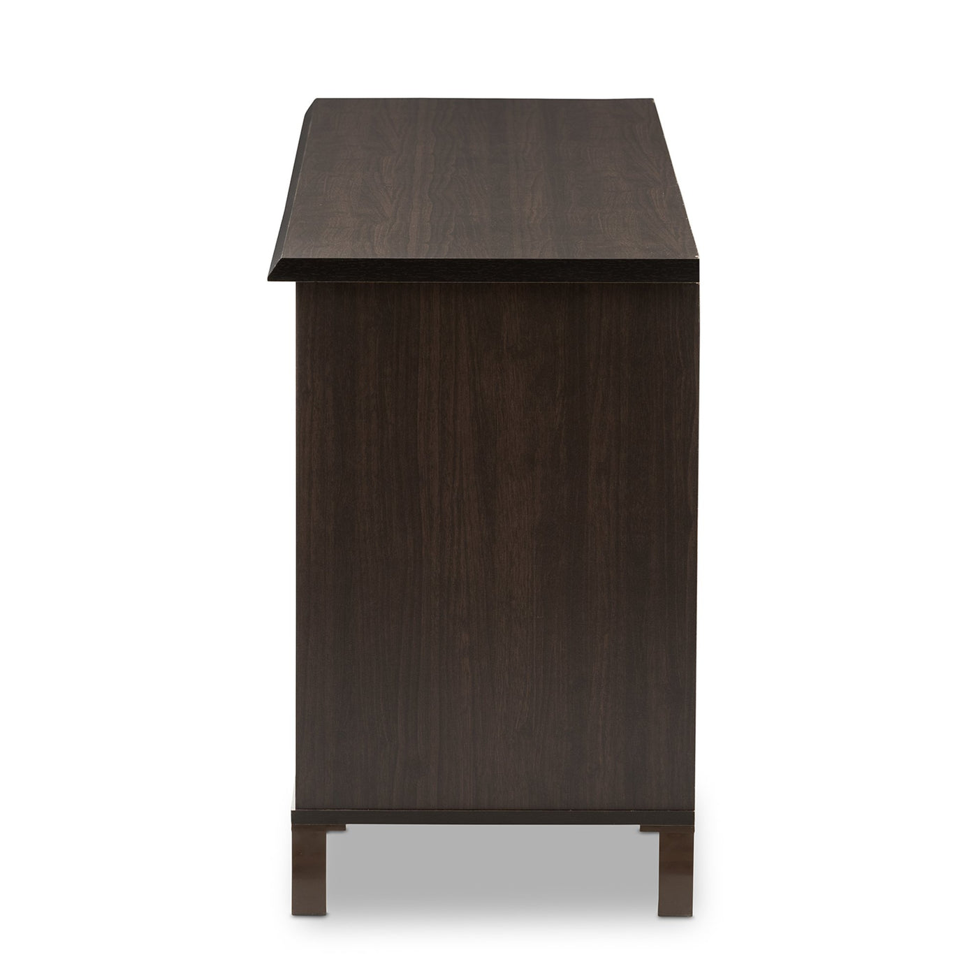 This Unna Dark Brown Wood Tv Cabinet , From Baxton Studio, Is Not Only Extremely Functional But Also High On Aesthetic Appeal. It Comes In A Beautiful Dark Brown Finish And Offers You Ample Space To Store All The Paraphernalia You Need In The Entertainment Room Along With Decor Items. Sturdy As Well As Durable, This Unit Has A Distinctive Style And Will Be An Excellent Addition To The Modern Home. Made In Malaysia, The Unna Requires Assembly. To Clean, Wipe With A Dry Cloth.