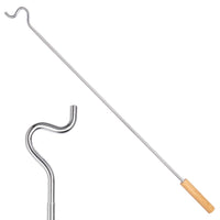 Q: What materials are used in the construction of the Closet Reacher Pole?A: The Closet Reacher Pole is made from high-grade chrome plated steel alloy, ensuring durability, and features a sturdy wooden handle for a comfortable grip.