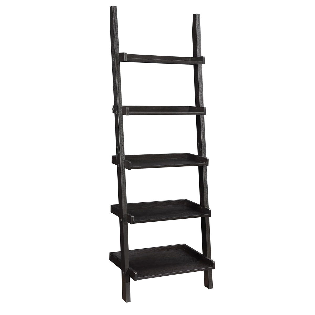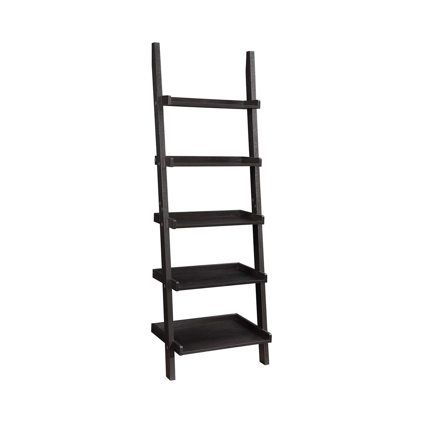 Infuse charm and personality in a transitional space. This tasteful ladder bookcase takes advantage of angles and linear shapes to make room for display. Books, décor, and potted greenery take their rightful place on five spacious shelves stacked and arranged at an angle. A deep cappuccino finish looks delightful and enticing as it provides palette versatility. Spruce up a bedroom or a library space with this fun ladder bookcase.