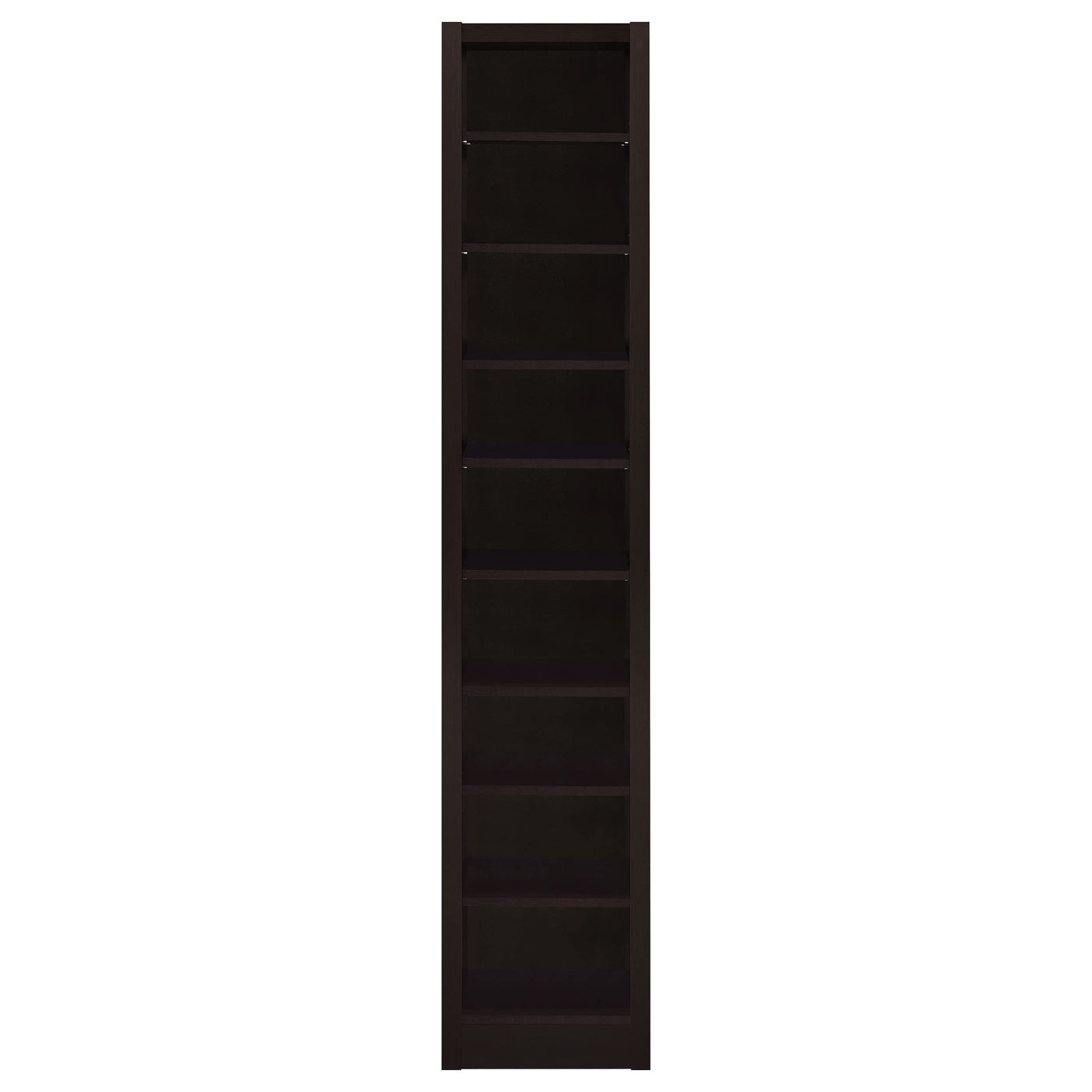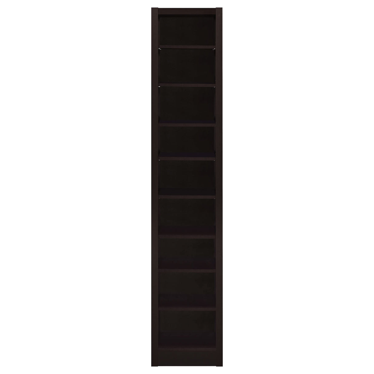 Accentuate a bedroom or living room with a bold yet simple design. This nine-tier enclosed bookcase is the perfect combination of sturdiness and style. It's made of MDF, particle board, and engineered veneer for extra durability. Tall and narrow, it accommodates a variety of books and belongings without taking up too much space. Complete with a rich finish of deep cappuccino, it lends effortless glamour to any room.