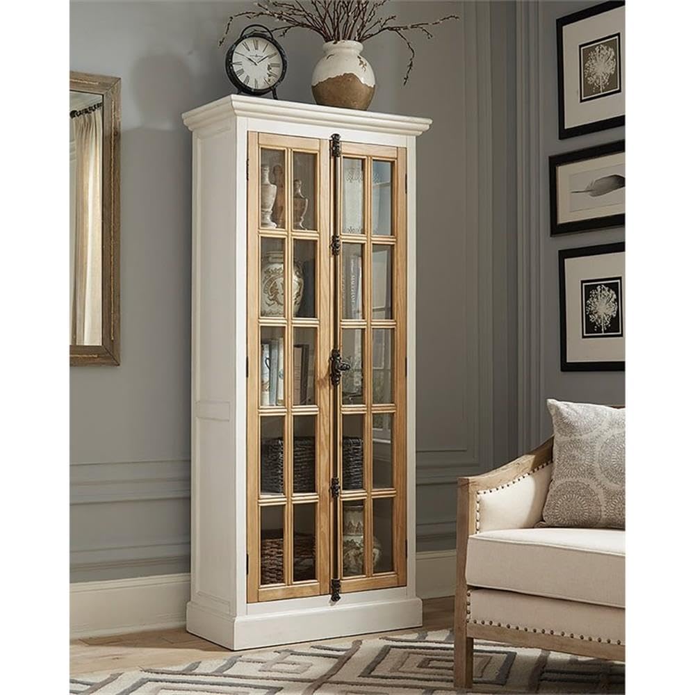 Put cherished memories and mementos on full display. This curio cabinet offers a stylish space to show off photos, art sculptures, and more. With an antique white finish and contrasting, natural wood accents, it has a pleasingly rustic look. Clear, window-style drawers give it an added element of traditional charm. With its large size and multiple sturdy shelves, this classic cabinet gives you plenty of space to work with.