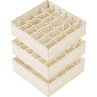 Why You Need Criusia Sock Drawer Organizers? Is Your Room Always Cluttered? Small Room But With Plenty Of Clothes? Aways Smells Bad In Your Wardrobe? Always Feel Annoyed Cuz You Could Not Find The Right Socks On Morning Or Date? Then Why Not Use Some Storage Boxes To Organizing Them? Set Of Criusia Foldable Drawer Organizers Are Included 3 Storage Boxes With 64 Cells In All ! Multi-Purposes -This Is A Great Accessoire Of Organization To Socks, Underwear, Ties, Scarves, Jewelry, Ornaments, Belt And More. -A Classic Decoration For Your Closet, Cabinet, Drawer, Baby Nursery, Bedroom And Bathroom. -Great Gift For Your Childs, Or Couples. Ideal For Mother'S Day, New Semester, Christmas, Thanksgiving Day, Housewarming. Advantages -Space Saver : This Set Of Foldable Drawer Dividers Can Keep Your Cabinet Looking Neat By A Great Organization. -Easy To Pick Out : All Items Can Be Sorted By Color Then Easily To Find What You Want. -Collapsible : You Only Need To Unzip The Bottom To Easily Fold Or Unfold Those Storage Boxes. -Lightweight : Easy To Carry And Store For Travel. -Keep Breathable : The Mesh Pockets Help Avoid The Lingering Smells Especially When You Leave Your Socks In Your Closet For A Long Time During Wet Days Or Summer. Material Pbt Fabric With High Density Pp Board And Exquisite Delicate Stitching. Care Instructions Wipe Them With A Clean Damp Cloth Demensions Color - Beige Size - Each Mesures 12.5''X12.5''X4'' (32X32X10Cm). 2 Of Them Have 24 Medium Compartments, 1 Of Them Has 16 Large Compartments.