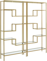 Crosley Furniture Sloane 2-Piece Bookshelf Set with Glass Shelves, Bookcase Storage, Gold
