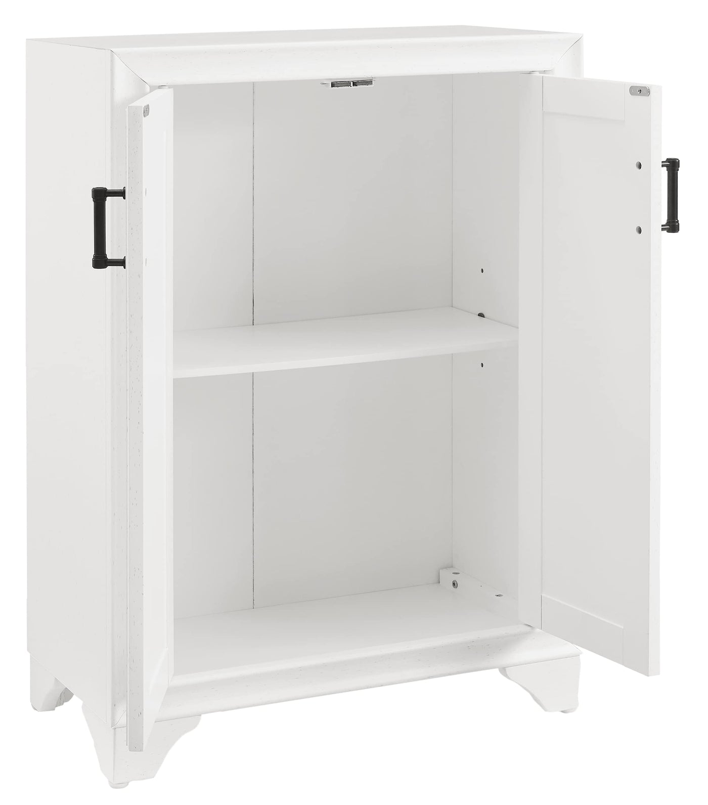 Bring classic charm to any room of the home with the Tara Accent Cabinet. Featuring a beautifully distressed finish and traditional design elements, this cabinet will blend with a variety of home decor. Featuring an adjustable shelf that adapts to your needs, you can use this item as a small pantry, entryway storage, or bathroom cabinet. Great for smaller spaces, the Tara Accent Cabinet is the home organization tool you’ve been looking for.