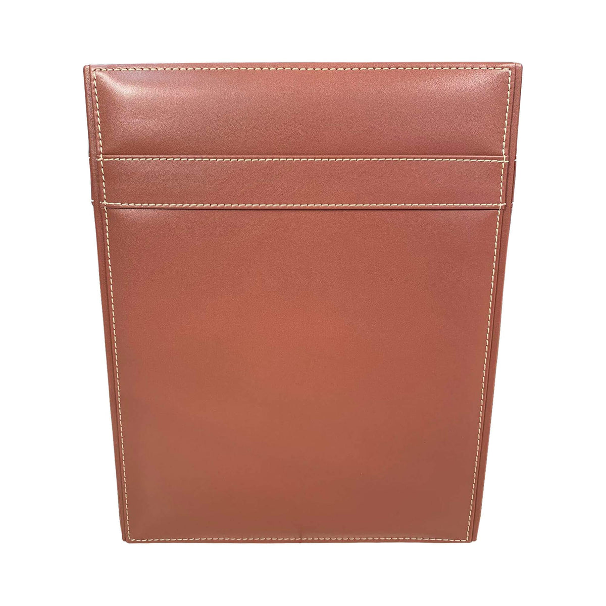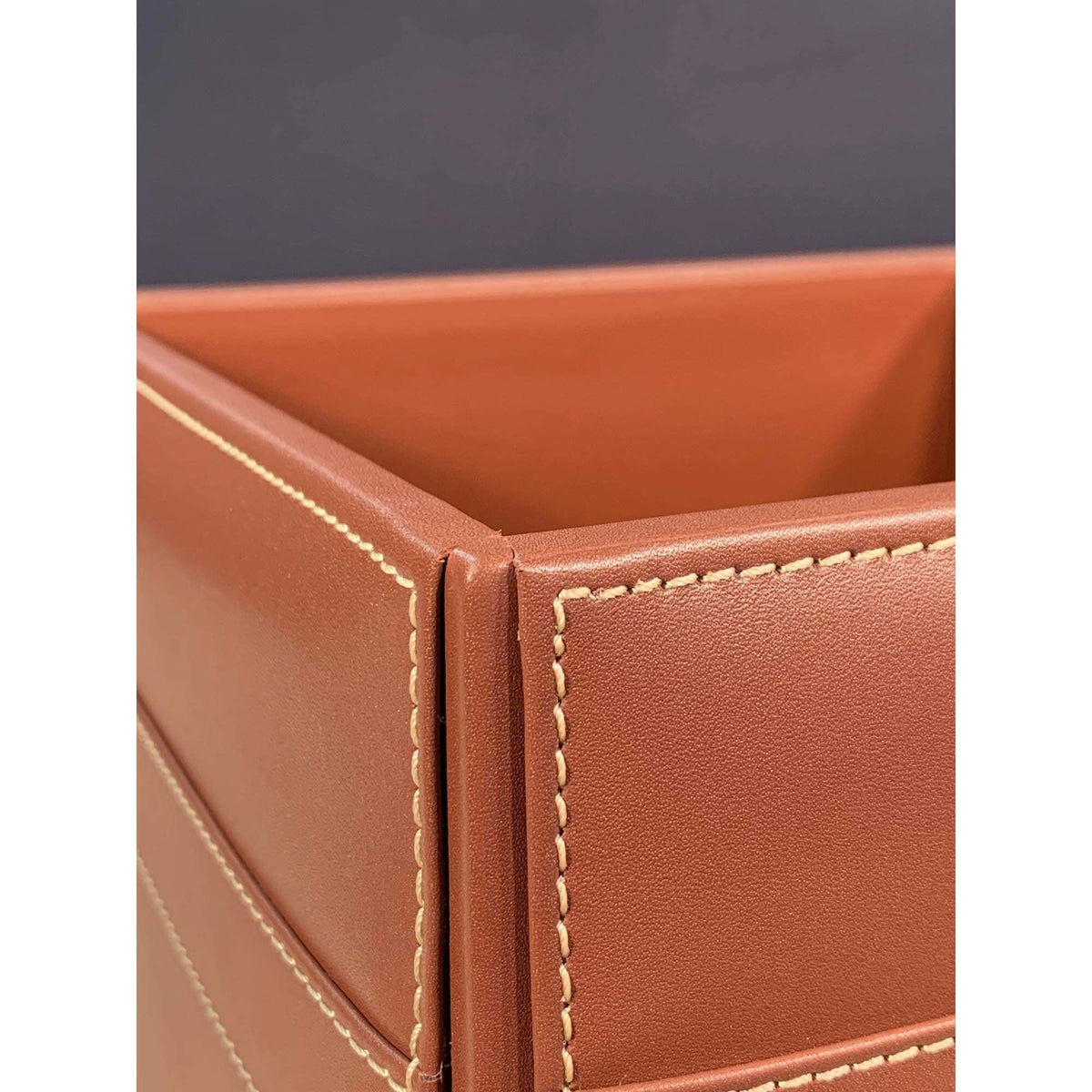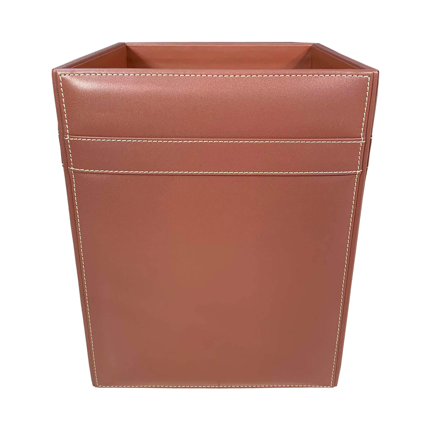 Featuring beautiful top-grain leather and perfect accent stitching, this wastebasket is designed for elegance. It fits under or beside your desk. This piece will provide you with a quality paper-waste receptacle while preserving the luxurious look of your office. With a 14-quart capacity and the hand built quality common to Dacasso's desk accessories, this is a functional accessory that will look great in your office.