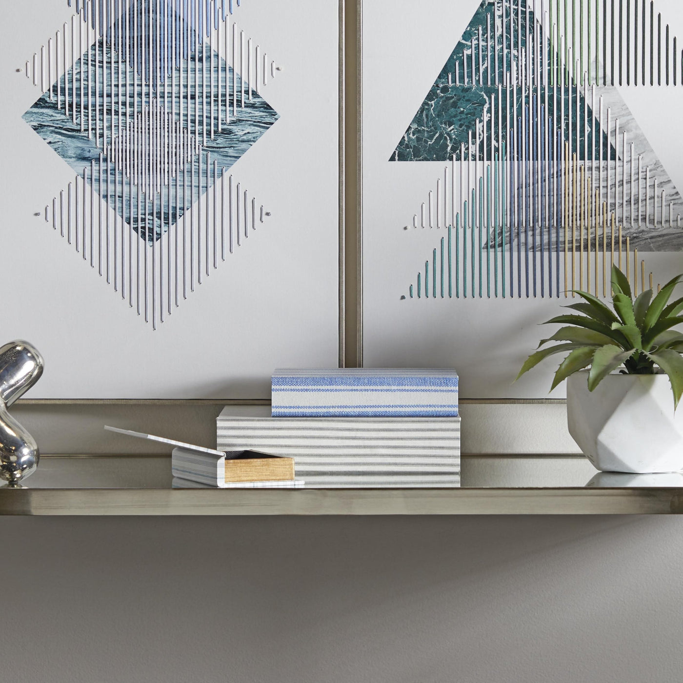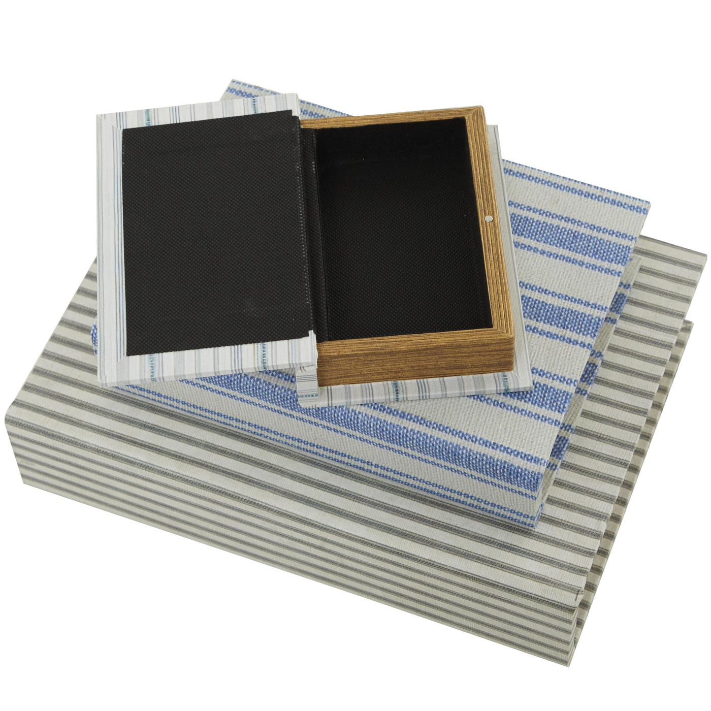 Deco 79 Canvas Decorative Box Faux Storage Book Book Shaped Boxes With Blue Striped Patterns, Set Of 3 Decorative Keepsake Boxes
