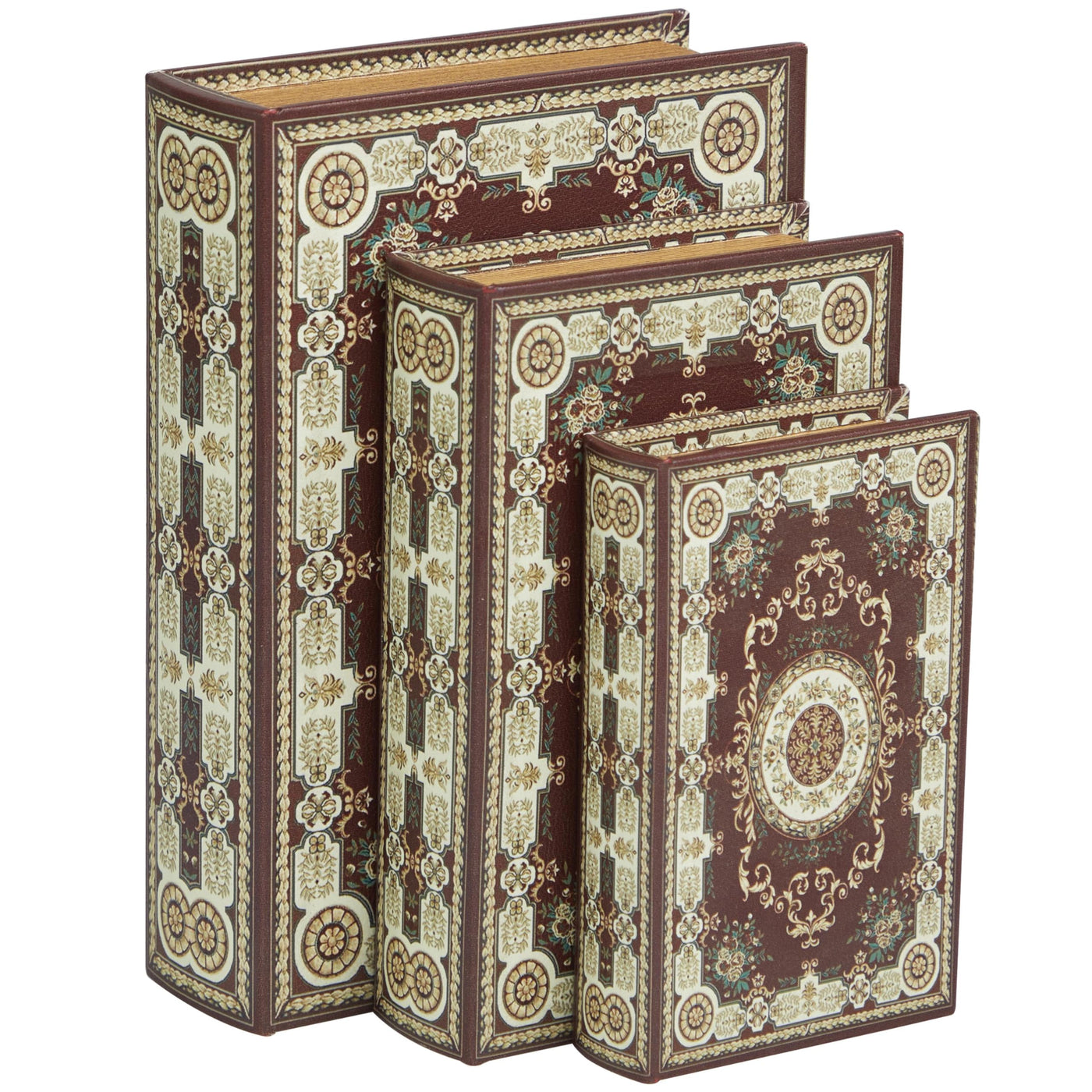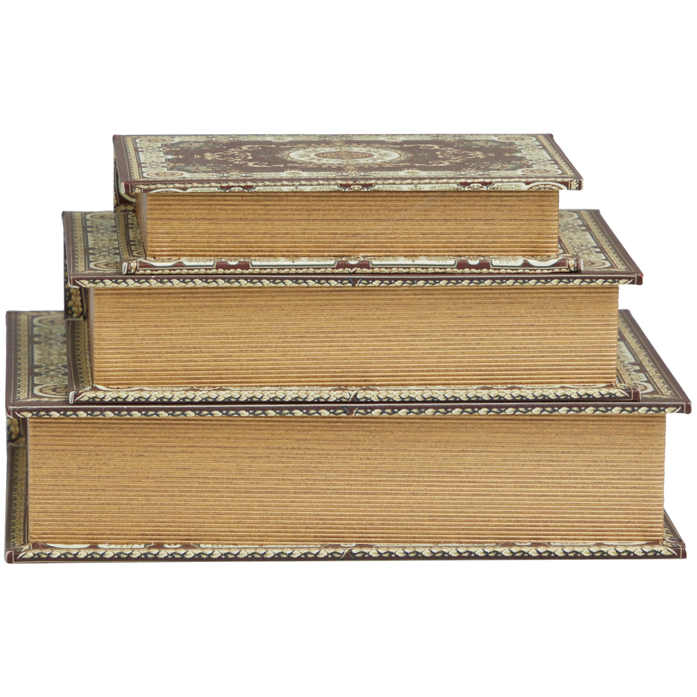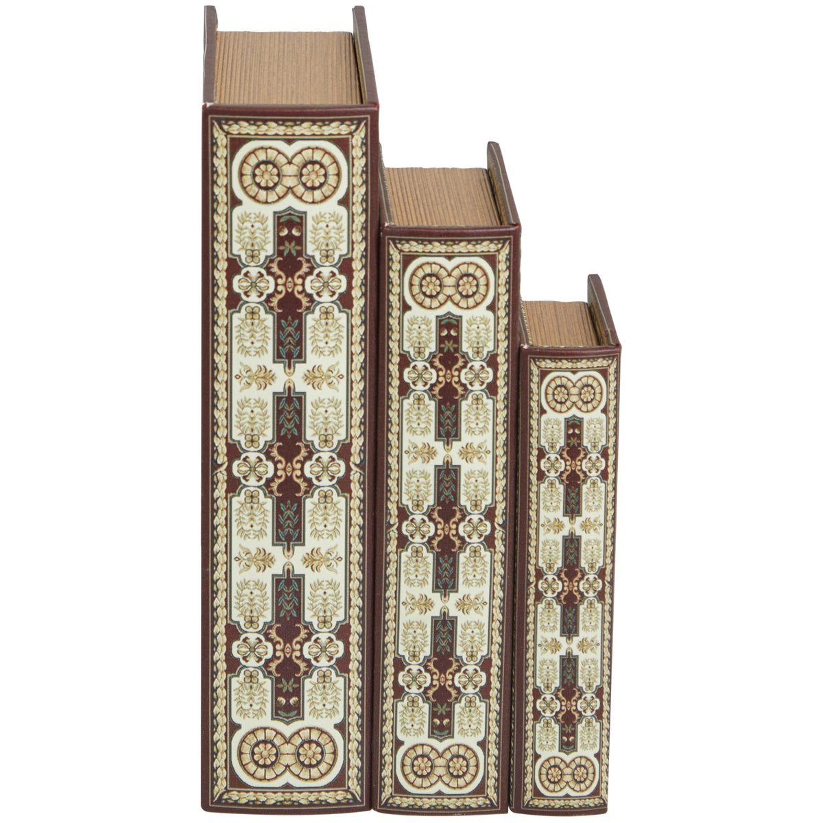 Deco 79 Canvas Decorative Box Storage Book Book Shaped Boxes With Arabesque Pattern And Gold Page Inspired Detail, Set Of 3 Deco