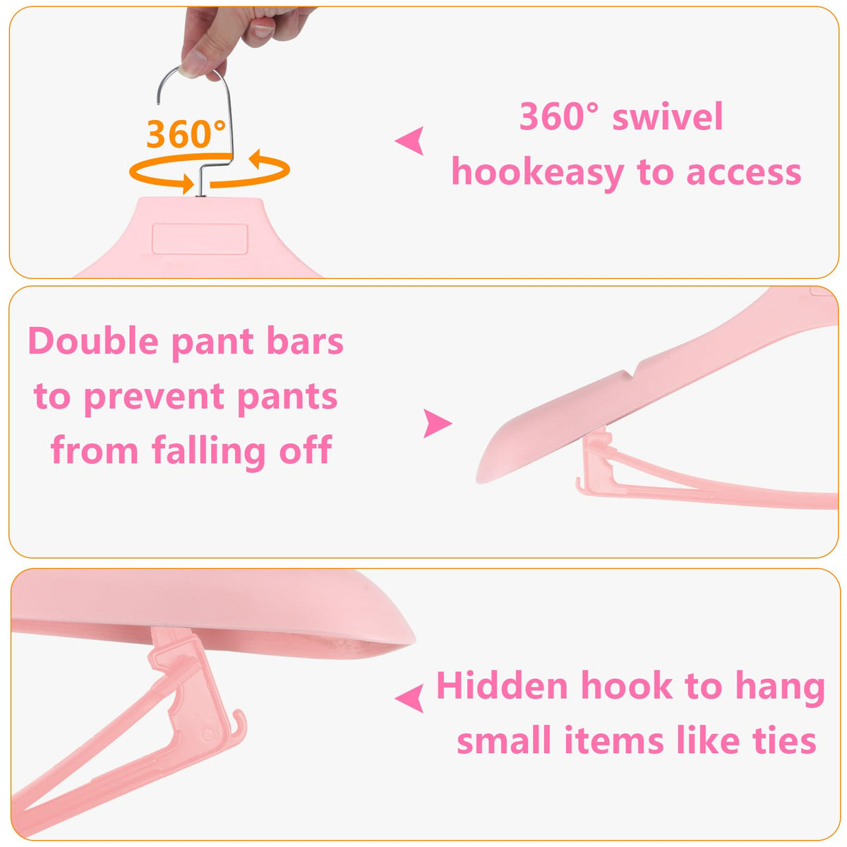 Dedu Suit Hangers For Men 10 Pack, Extra Wide Hangers Non Slip Width 17.7'', Pink Coat Hangers Thick Plastic With Pants Bar 360