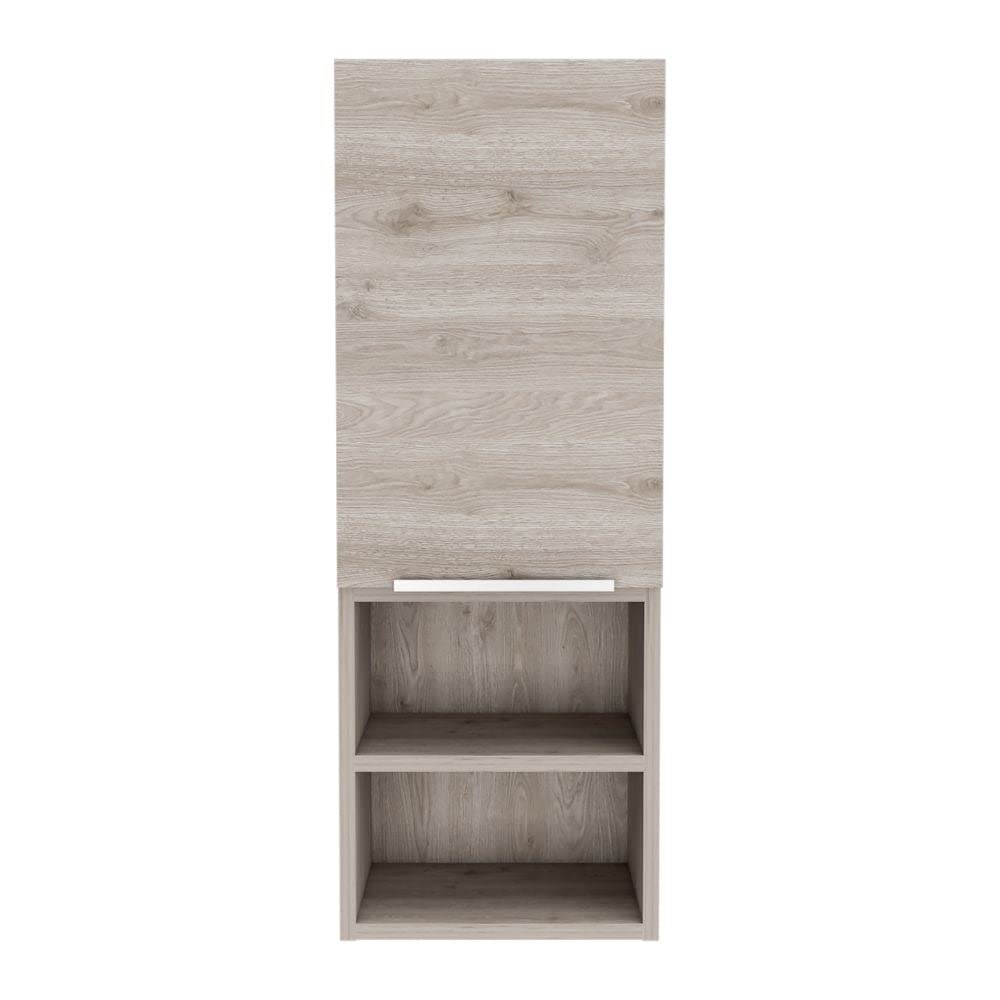 The Jasper Bathroom Cabinet is the perfect way to add storage to your bathroom. It features two open shelves(5,7'' H X 10,6''W) and a one-door cabinet with two interior shelves(8,2''H X 10,6''W) making it the ideal place to store all of your bathroom essentials with an ergonomic size(32.17"H X 11.81"W X 10.04" D). The cabinet is also made from humidity-resistant materials in light grey color, so you can be sure that your belongings will stay safe and dry.Features Color: Light Grey Product Size: 11.8"W x 32.1"H x 10"D Texture: Woody Eviroment: Bathroom Doors: 2 Drawers: 1 Shelves: 1 Made In China