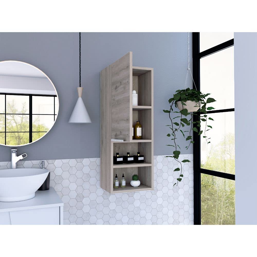 DEPOT E-SHOP Savona Medicine Single Door Cabinet with Two Interior Shelves and Two External Shelves, 32" H, Light Gray, Bathroom