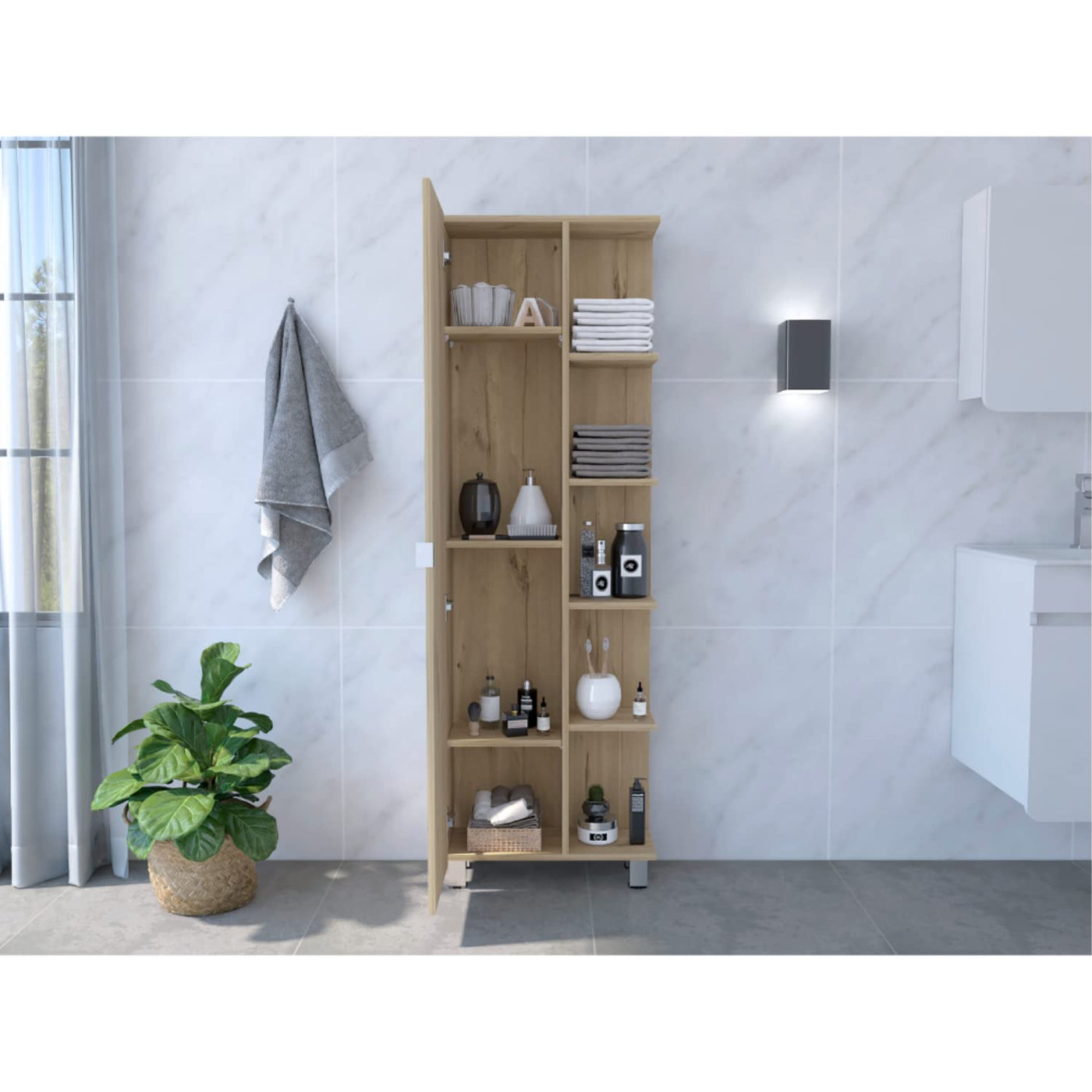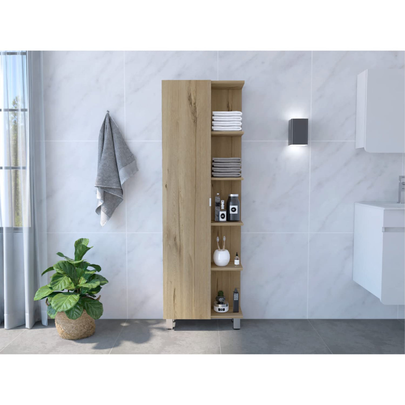 DEPOT E-SHOP Venus Linen Single Door Cabinet with 5 Open Shelves and 4 Inner Shelves, Light Oak