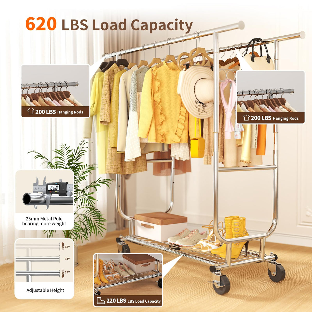 Dgedby Clothes Rack Heavy Duty 620Lbs For Hanging Clothes, Commercial Garment Rack Heavy Duty,Collapsible & Portable Clothes Rac