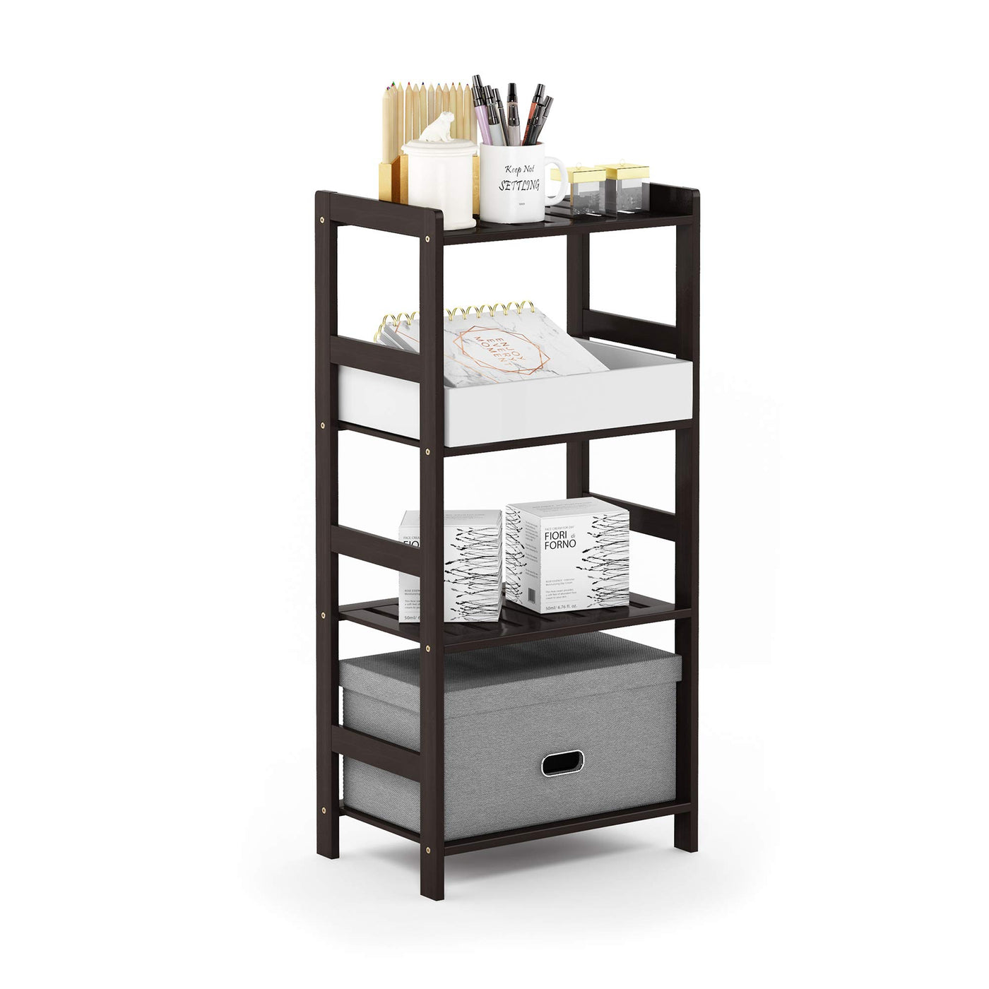 Furinno FNCJ-33012 Pine Solid Wood 4-Tier Storage, Espresso