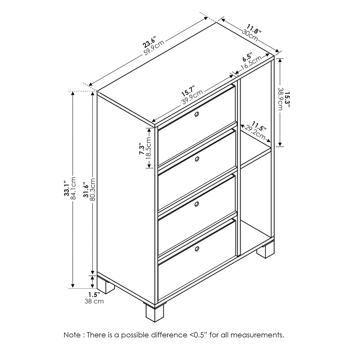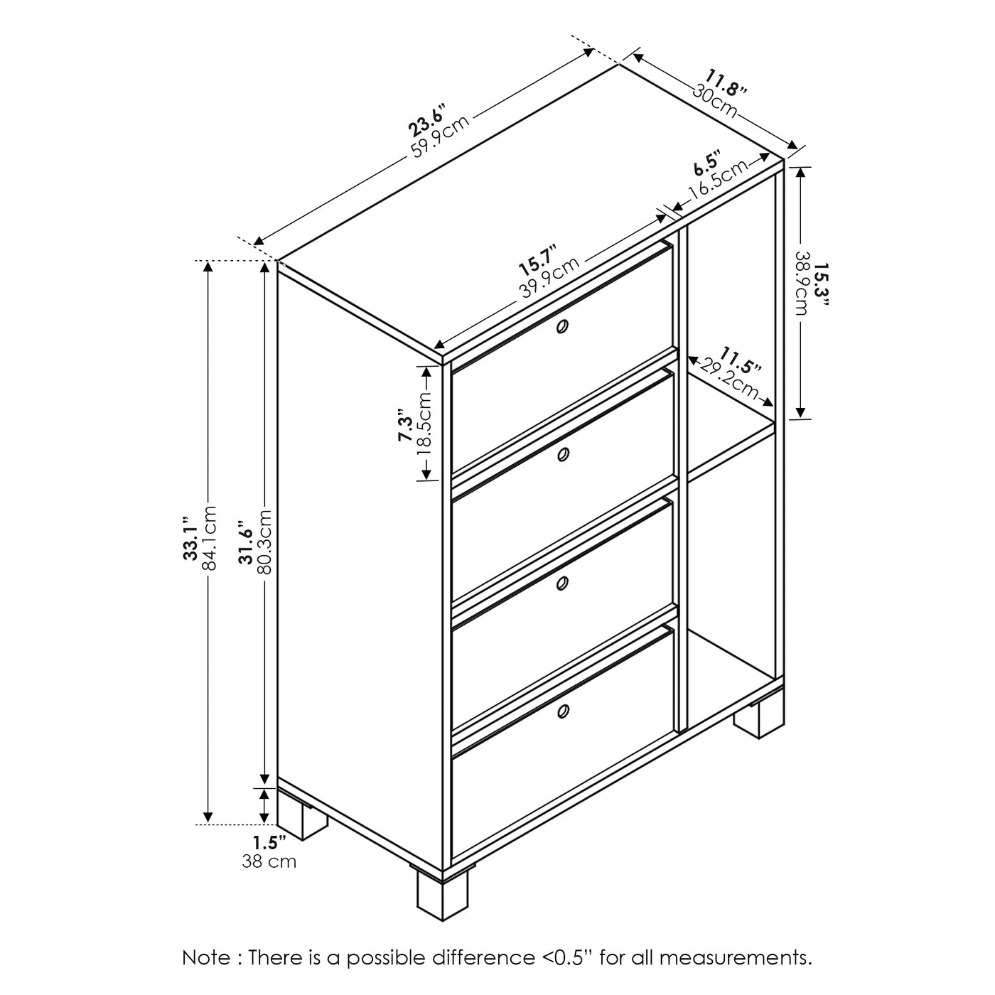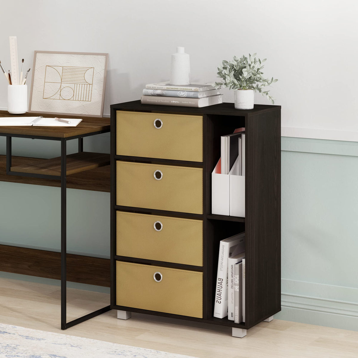 Furinno Multipurpose Storage Cabinet w/4 Bin Drawers, Steam Beech/Black