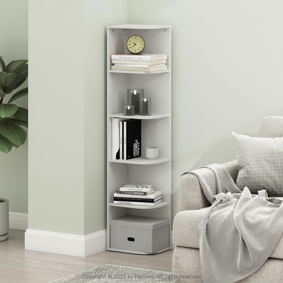 Furinno Pasir 5-Tier Corner Open Shelf Bookcase, White