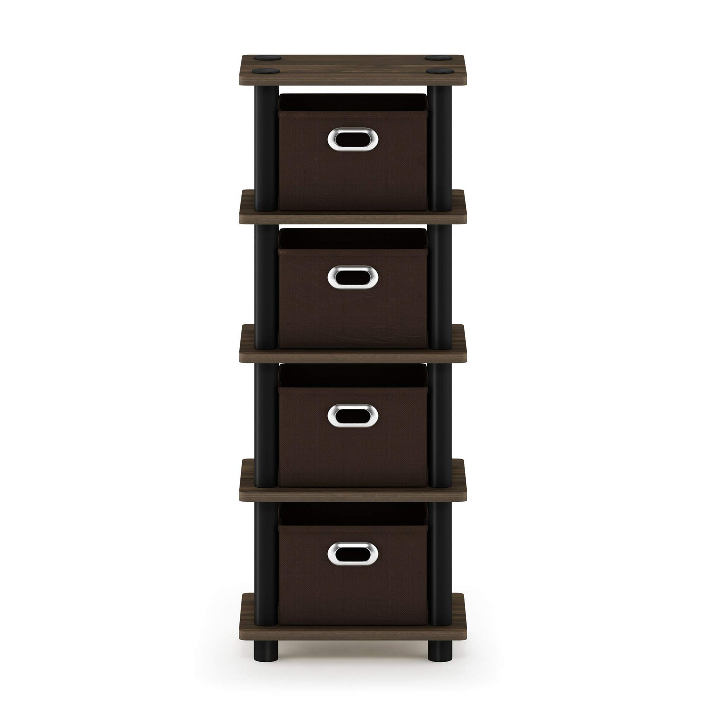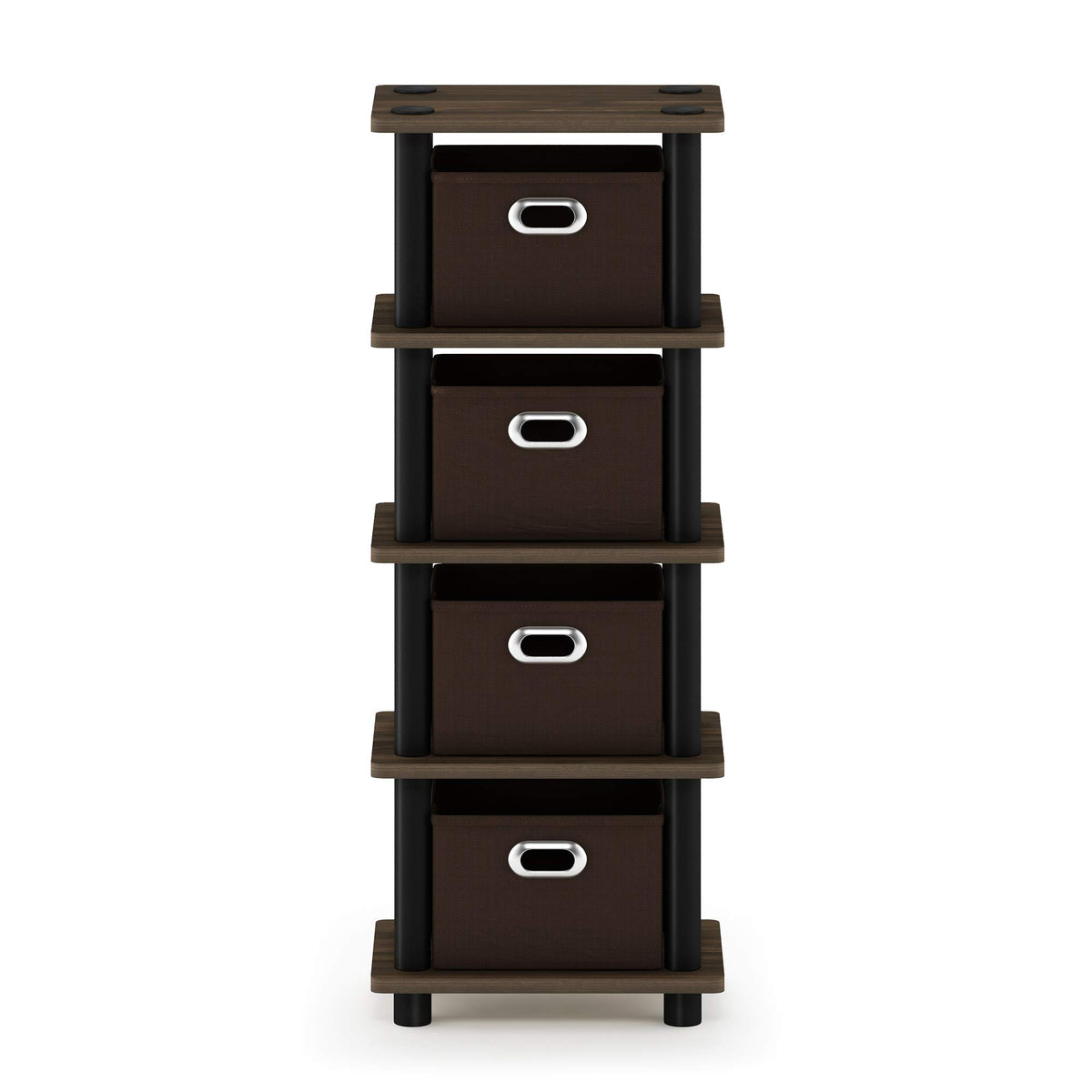 FURINNO Turn-N-Tube 4-Bins System Rack, Columbia Walnut/Black/Dark Brown