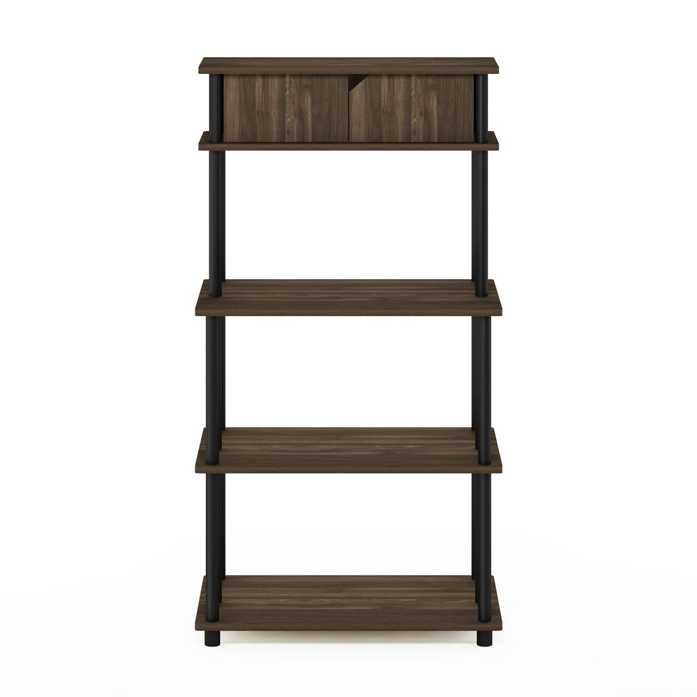 Furinno Turn-N-Tube Kitchen Storage Shelf with Top Cabinet for Kitchen, Dining Room and Home Office, Columbia Walnut/Black