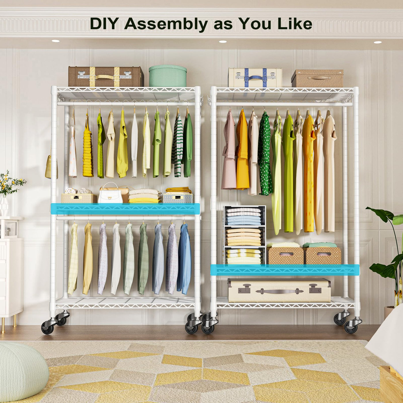 Q: Is the FUTASSI clothes rack easy to move around?A: Yes, the FUTASSI clothes rack features lockable 360° wheels that allow for smooth movement. You can easily relocate it within your home, whether in the bedroom, laundry room, or living room.