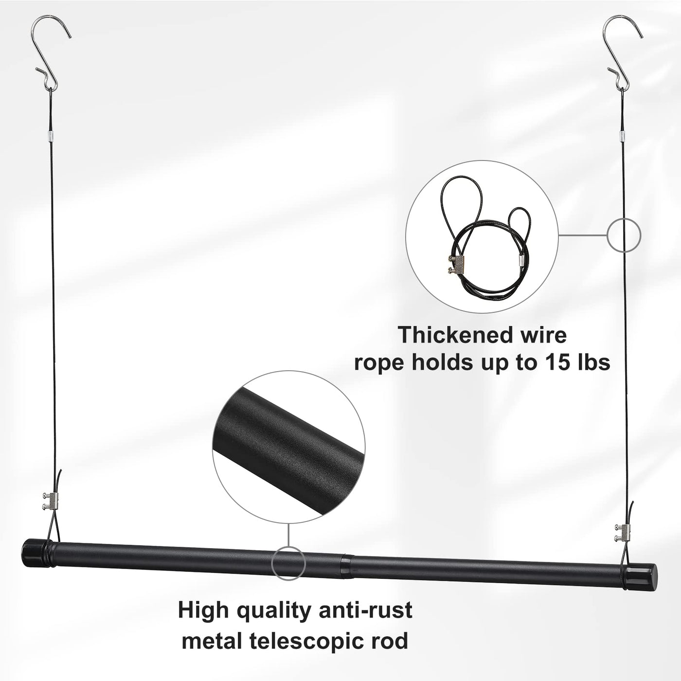 Inflation Adjustable Hanging Closet Rod 3 Different Lengths Of Adjustable Closet Hanging Rod For Choice: 15-25 Inch 2 Sections Minimalist Closet Rod 15-40 Inch 3 Section Medium Closet Rod 15-50 Inch 4 Section Closet Rod Extender 35'' Long Wire Rope Holds Up To 15 Lbs Real Wardrobe Manager: Save Space And Keep Your Closet Organized The Entire Closet Rod Set Is Made Of High-Quality Raw Materials More Durable And Stronger Won'T Rust Or Break