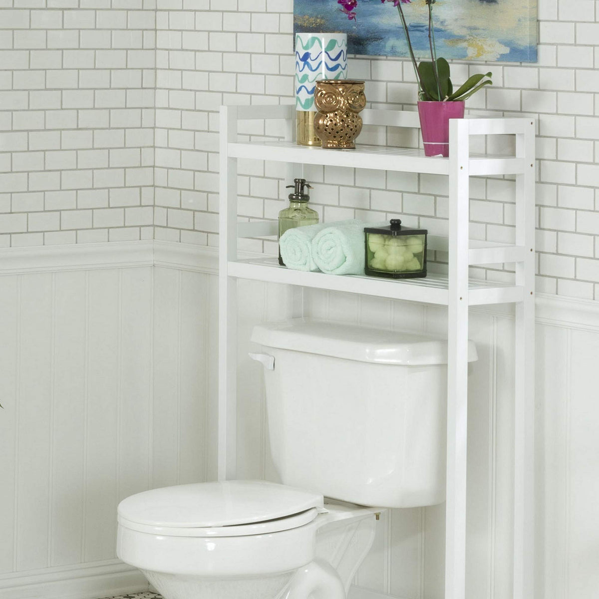 Our sturdy 2Tier Space Saver is crafted from 100 Solid Wood and designed to bring a modern functionality to your bathroom decor With sleek lines and open access storage and display the Space Saver creates usable space while also adding beauty and a contemporary appeal A slim profile means it can fit in tight spaces and wont overwhelm your room A scaled down version of our original Space Saver this smaller 2Tier version leaves more wall space above the unit for a mirror wreath picture or other decor Our high quality color finishes are snag free and waterresistant Solid wooden Birch is durable sturdy and timeless Features. 48 in Bathroom Extra Storage with 2 Shelves. Solid wooden furniture is durable sturdy and timeless. Snag free and water resistant finishes. Easy assembly with clear simple instructions. Wipe clean with damp cloth. Sturdy constructionSpecifications. Color White. Number of Shelves 2 Shelves. Height 48 in. Width 345in. Depth 9 in