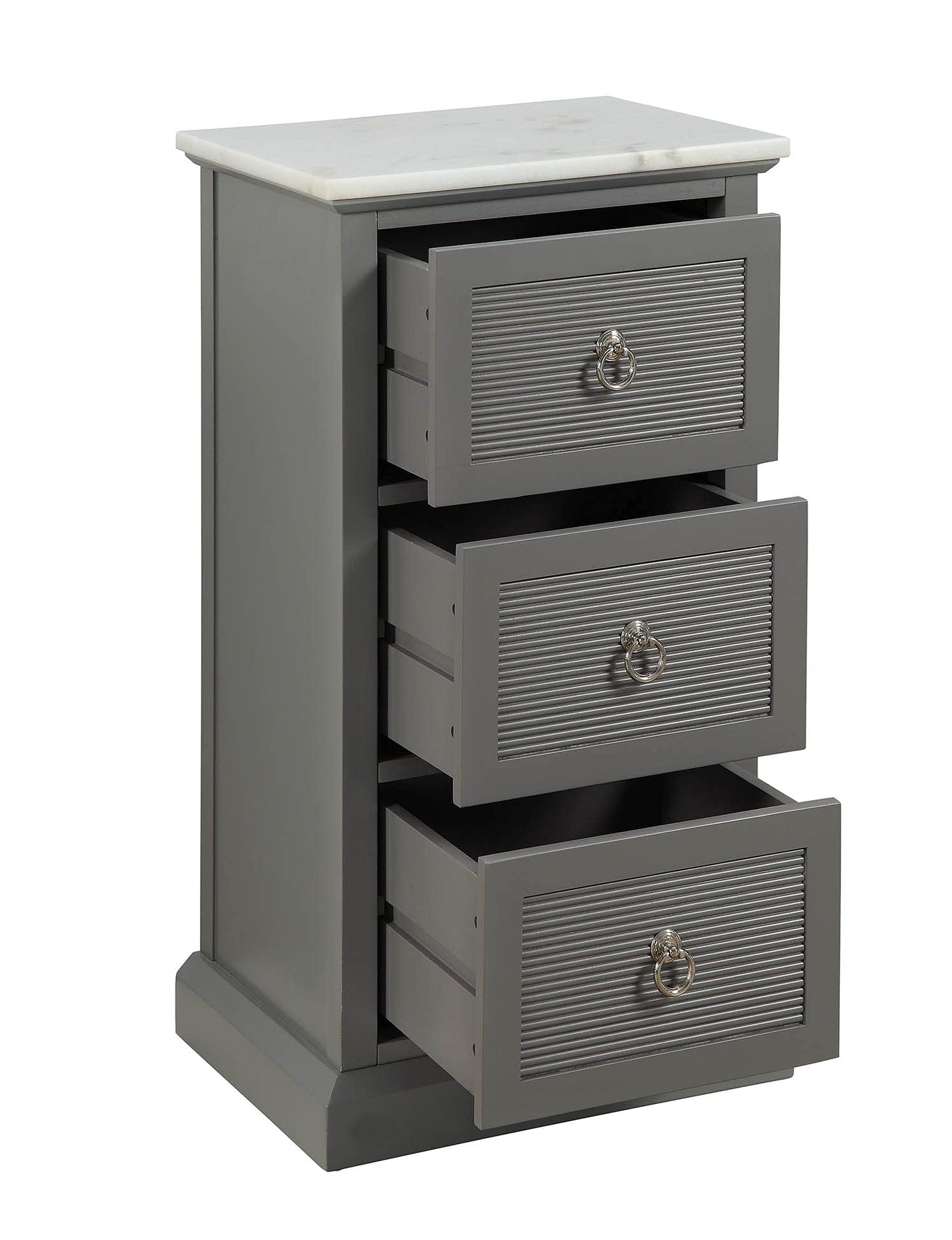 Is There Anything More Frustrating Than A Cluttered, Disorganized Bathroom? Imaged When You Are Running Late For Work Trying To Push Through Your Morning Ritual, And Found Out Your Bathroom Has Conspired Against You. You Cannot Find Your Toothpaste, Eyeliner And The Last Toilet Paper Has Been Used By Somebody Else. You Know The Feeling. The Cabinet Will Bring Order To Your Chaos. With The Three-Drawers Design, There Is Abundant Spaces For You To Keep Your Daily Necessities. Featuring White Marble Top And Gray Finish, This Piece Does Not Only Offer Convenience, But Also Fashionable Taste. Modish And Practical, It Will Be A Perfect Addition To Your Bathroom Decor.**