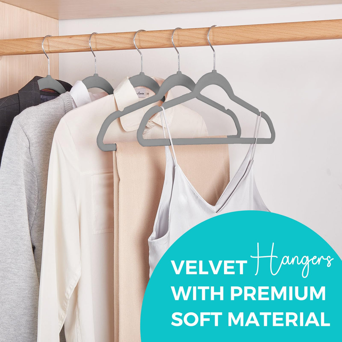 Welcome To Our House Day Hangers Store! Our Velvet Hangers Are Made Of High-Quality Materials And Crafted With Exquisite Workmanship, Offering Various Advantages That Make Them An Ideal Choice For Your Household Or Commercial Space. Our Velvet Hangers Feature An Non-Slip Design With A Soft Velvet Surface That Prevents Clothes From Slipping Off And Avoids Creases Or Deformations On Your Clothes. Additionally, The Soft Surface Of The Hanger Won'T Scratch Or Damage Delicate Fabrics Such As Knitwear, Sweaters, Or Silk Clothes. Our Velvet Hangers Are Also Highly Versatile. They Can Be Used Not Only For Everyday Clothing Items Like Shirts And Pants But Also For Heavier Items Such As Coats, Jackets, Or Dresses. This Saves Space In Your Home Or Business While Keeping Everything Tidy. Furthermore, The Velvet Surface Of Our Hangers Has A Soft, Elegant Appearance That Adds A Touch Of Class To Your Home Or Commercial Space, Making Them Not Just Practical But Also Aesthetically Pleasing Decor Items. Overall, Our Velvet Suit Hangers Offer A Combination Of Anti-Slip, Protective, Versatile, Elegant, And Durable Features, Making Them The Best Choice For Your Household Or Commercial Space. Sort Your Clothing And Keep Them Organized With Our Velvet Clothes Hangers,Space Saving Clothes Hangers Help You Saving More Than Half The Closet Space Compared To Wood Or Plastic. They Have Can Hold Suits And Outerwear Securely With Its Heavy Duty Strength. Our Velvet Coat Hangers Holds Heavy Winter Coats Easily * Can Hold Large Capacity From 5Kg To 8Kg(11Lbs To 18Lbs) Finally, Our Velvet Hangers Are Made Of High-Quality Materials That Are Durable And Resistant To Wear And Tear, Providing Cost-Effective And Long-Lasting Use. Package Includes: Velvet Hangers 50 Pack