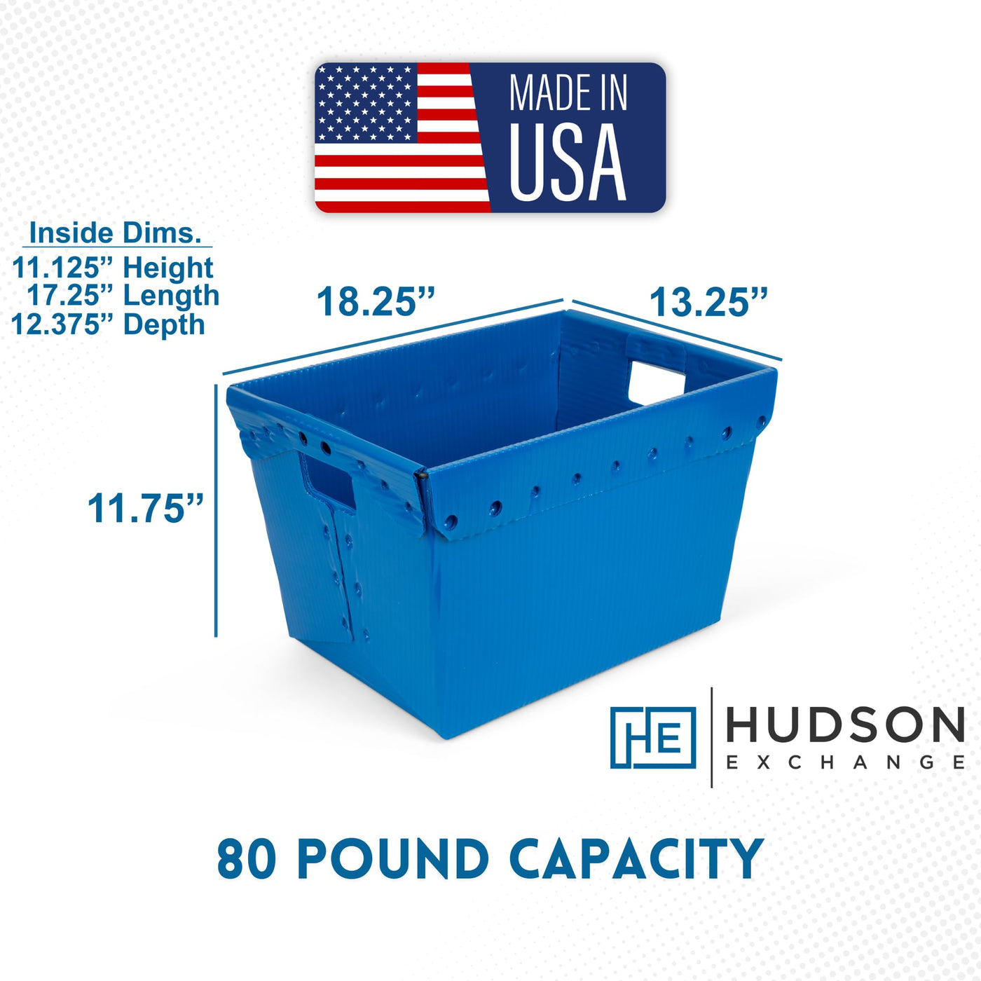 Hudson Exchange Corrugated Space Age Handled Storage Container Mail Totes For The Home And Office Are Available In Multiple Colors. Perfect For Package Handling And Routing. Tapered Interior Wall Allow For Nesting When Not In Use, No Wasted Space. Our Heavy Duty Corrugated Plastic Makes For Easy Cleaning. Comfort Handles Are Ergonomic And Safe For Use Around The House Or Work. Reinforced Corrugated Plastic Design With Steel Wire Makes For A Strong And Secure Nesting Container Tote.