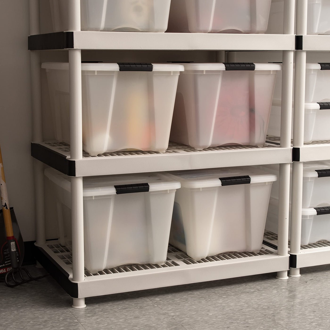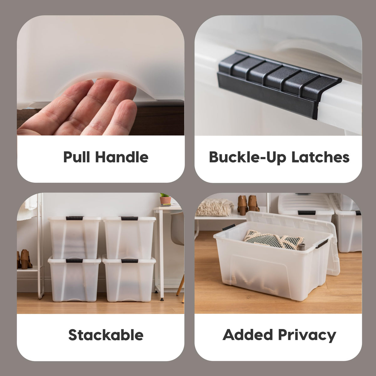 Iris Usa 54 Qt Stackable Plastic Storage Bins With Lids, 4 Pack - Bpa-Free, Made In Usa - Discreet Organizing Solution, Latches,