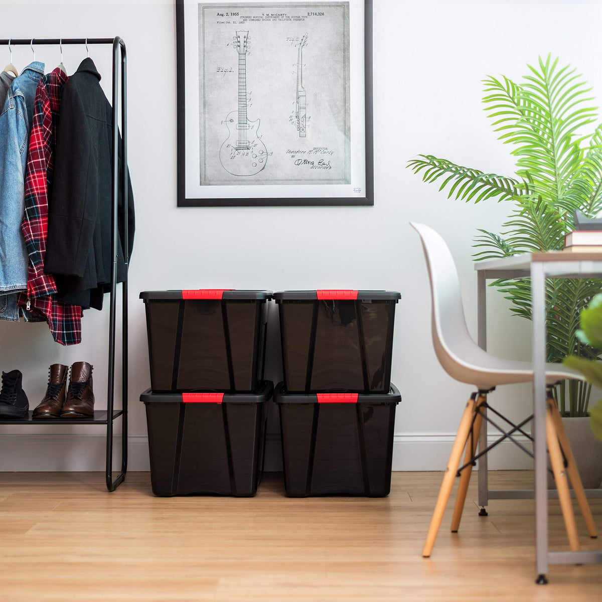 Iris Usa 72 Qt Stackable Plastic Storage Bins With Lids, 4 Pack - Bpa-Free, Made In Usa - Garage Organizing Solution, Latches, D