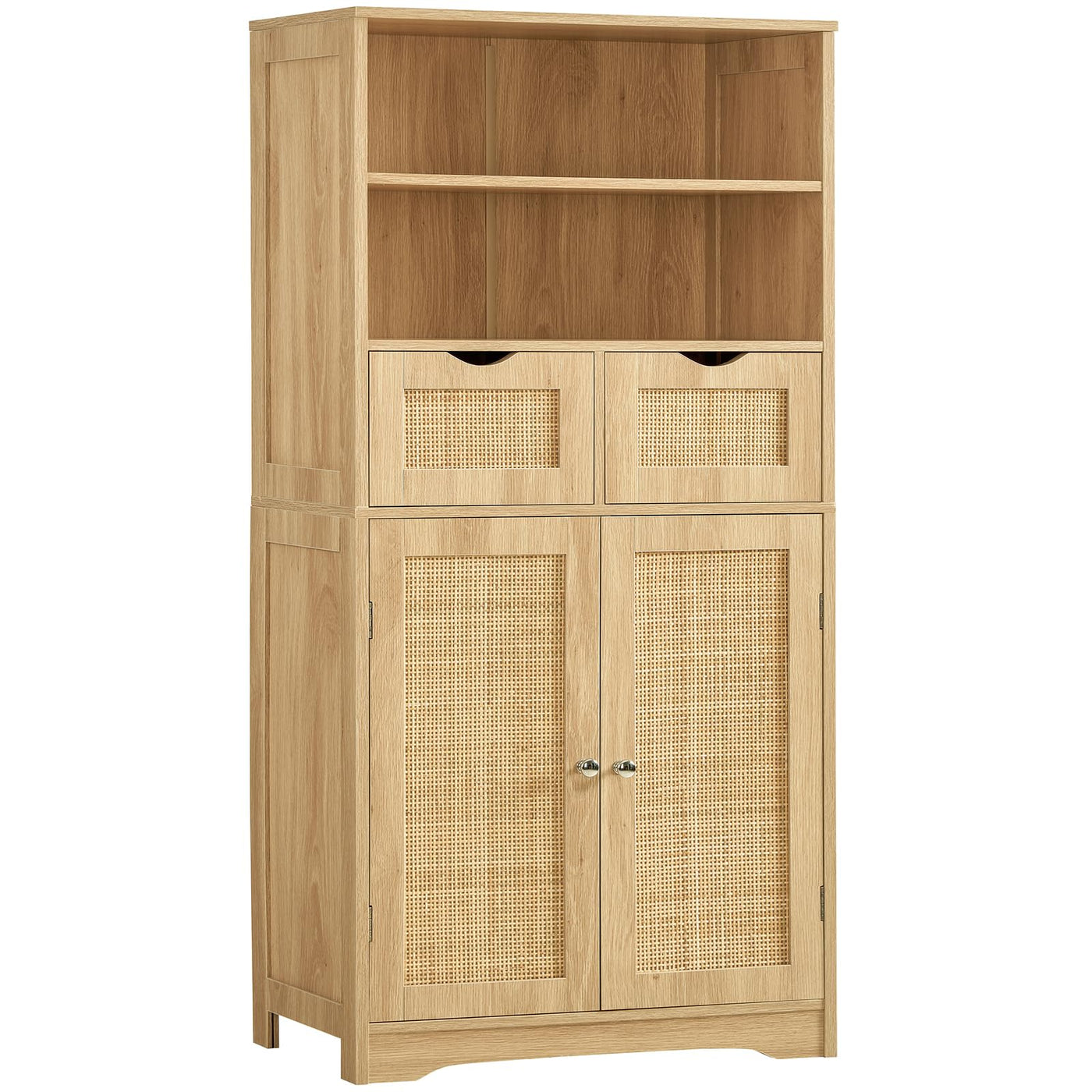 Iwell Tall Storage Cabinet, Rattan Cabinet With 2 Drawers & Adjustable Shelf, Accent Cabinet For Living Room, Dining Room, Home