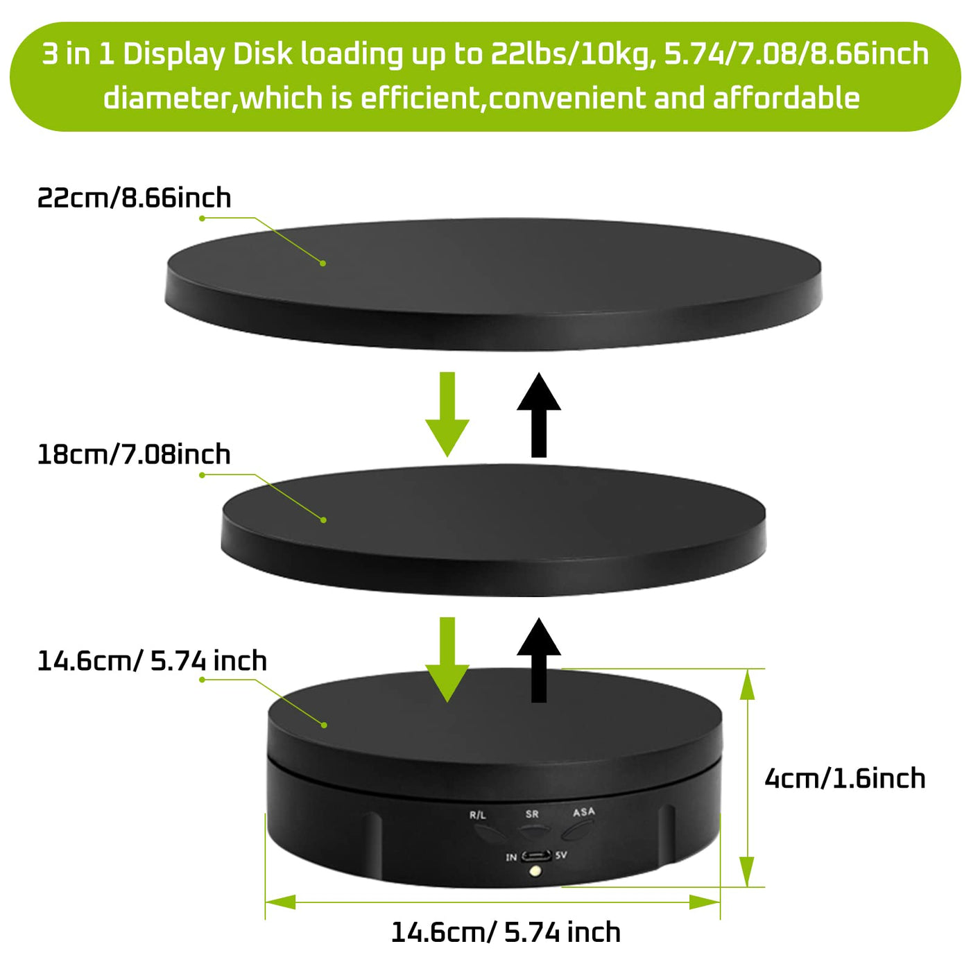 Jayegt 3 In 1 Motorized Rotating Display Stand With 5.74/7.08/8.66 Inch Replacement Cover,Max 22Lbs Load , 3D Models, Cake -Blac