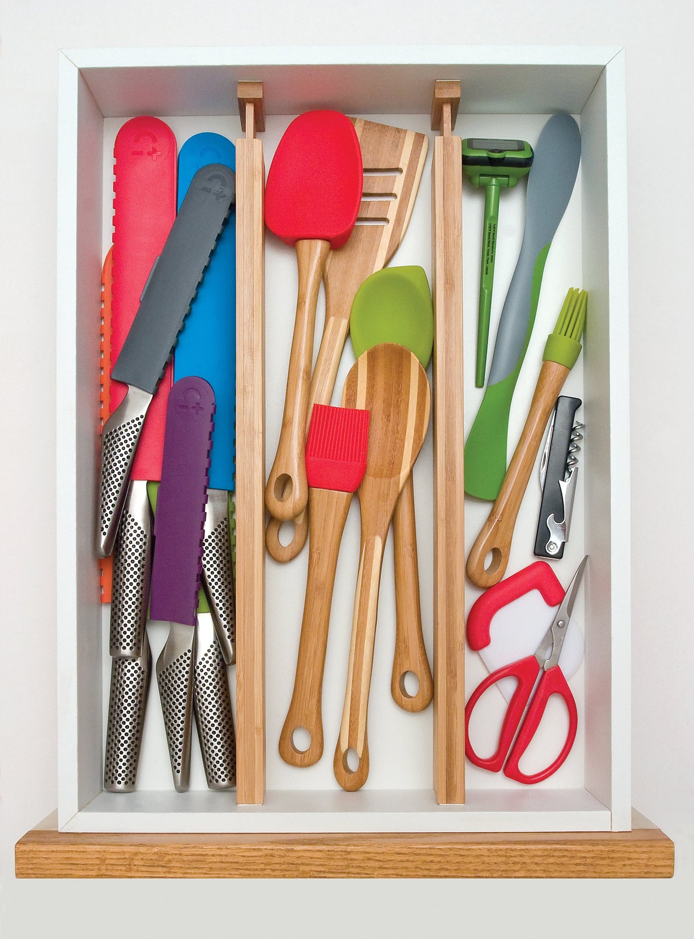 Lipper International 8896 Bamboo Wood Custom Fit Adjustable Kitchen Drawer Dividers, Set Of 2