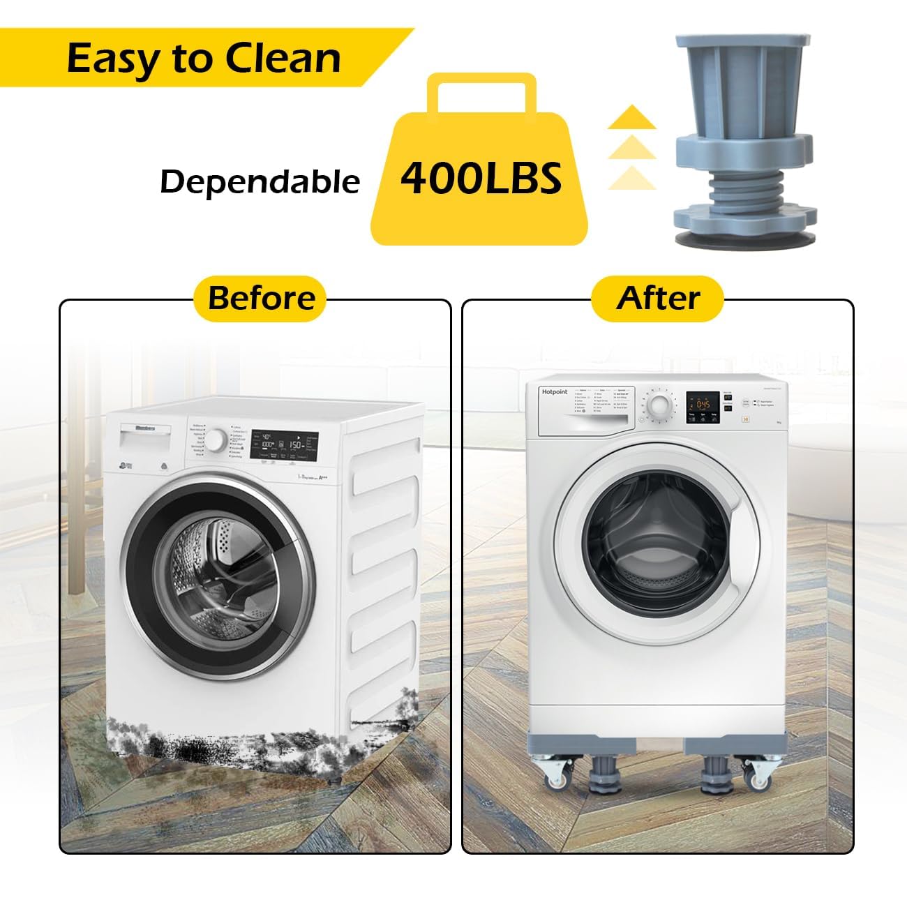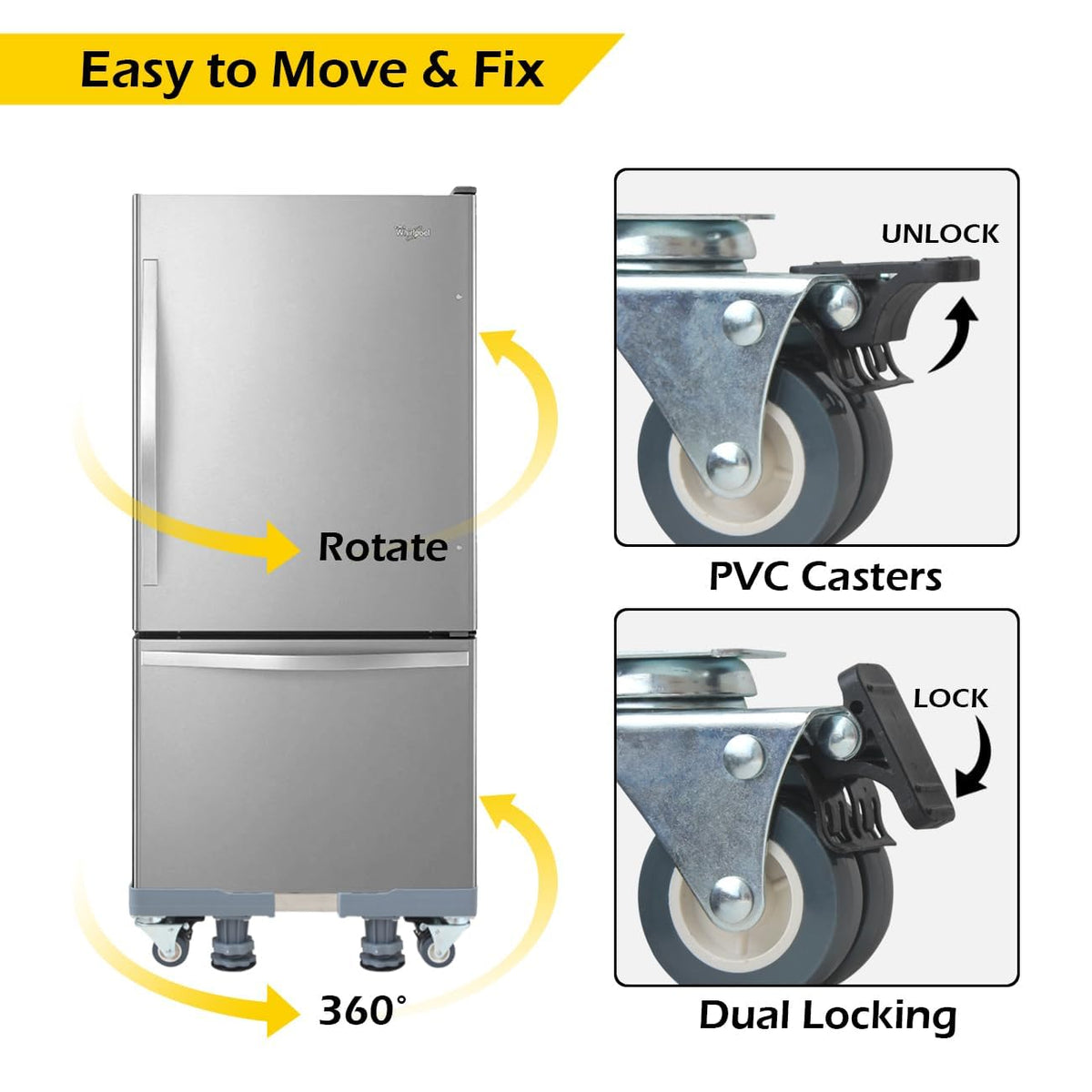 Maxworks Adjustable Furniture Dolly With 4 Dual-Locking Wheels, Universal Washing Machine Base Stand, Appliance Mover For Refrig
