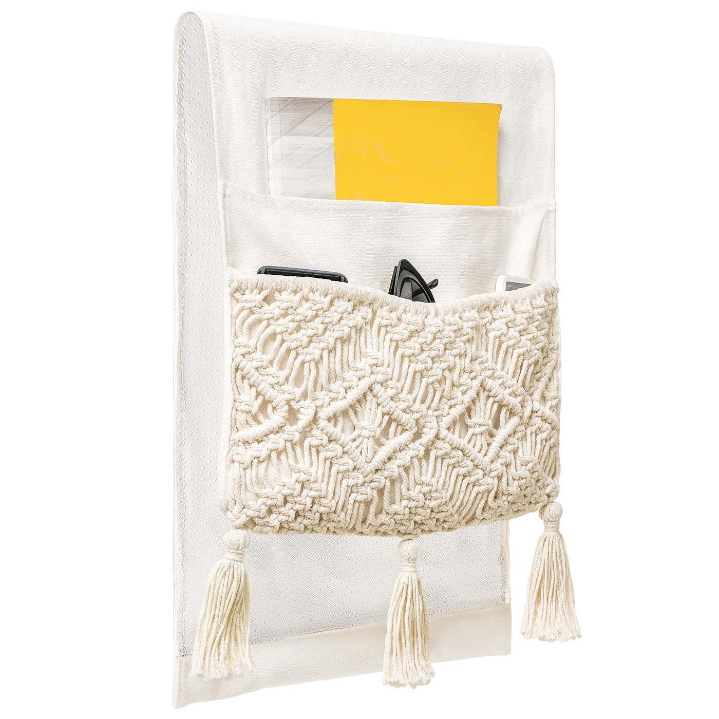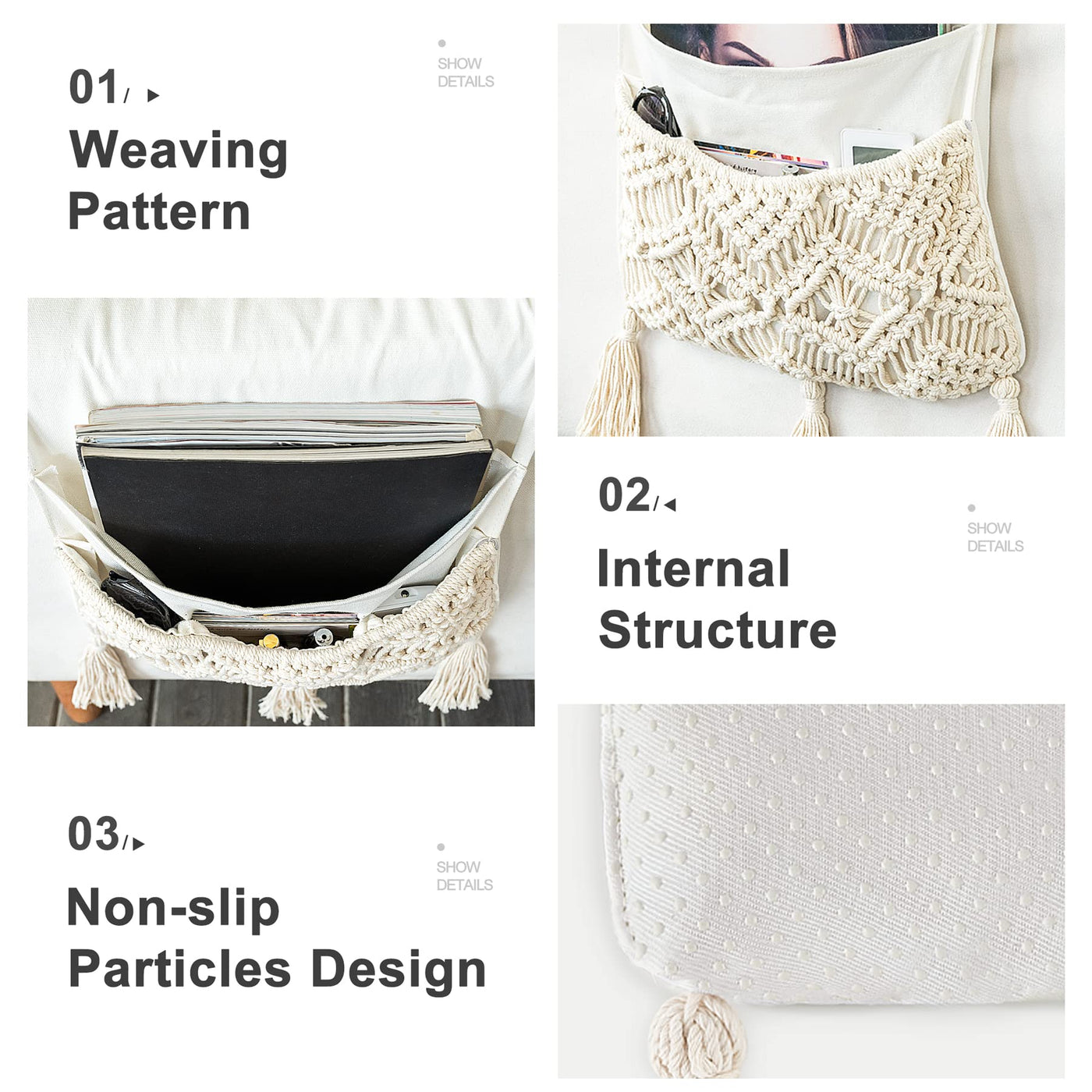 Mkono Macrame Sofa Armrest Organizer Remote Control Holder Couch Bedside Armchair Caddy Storage Basket Bag For Tv Remote Control