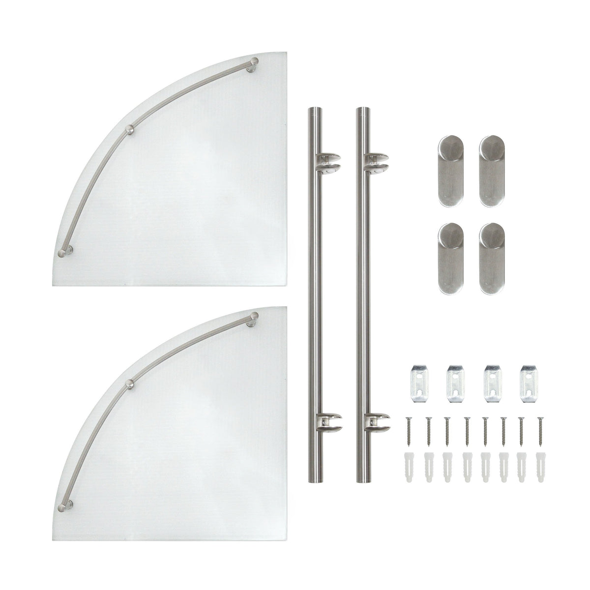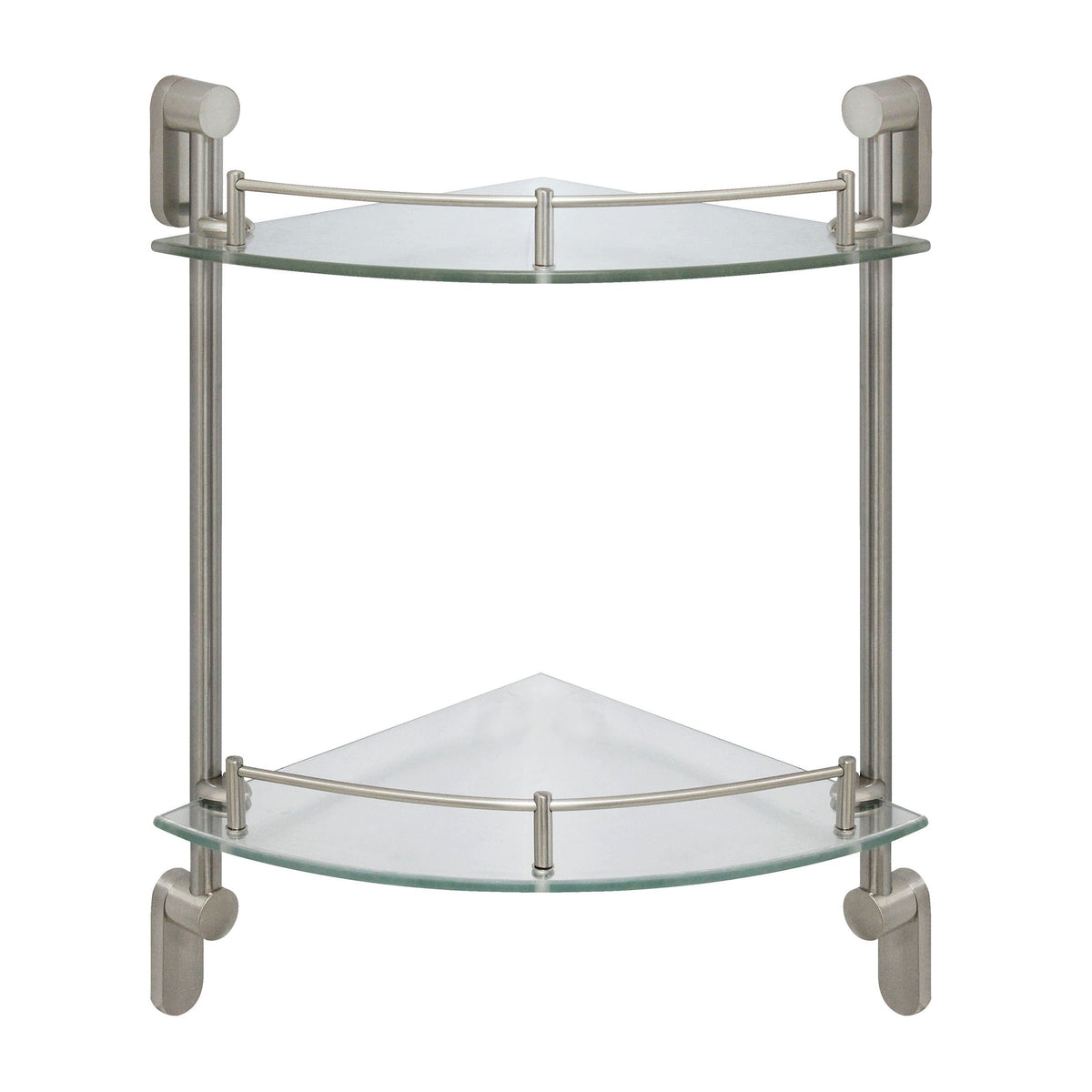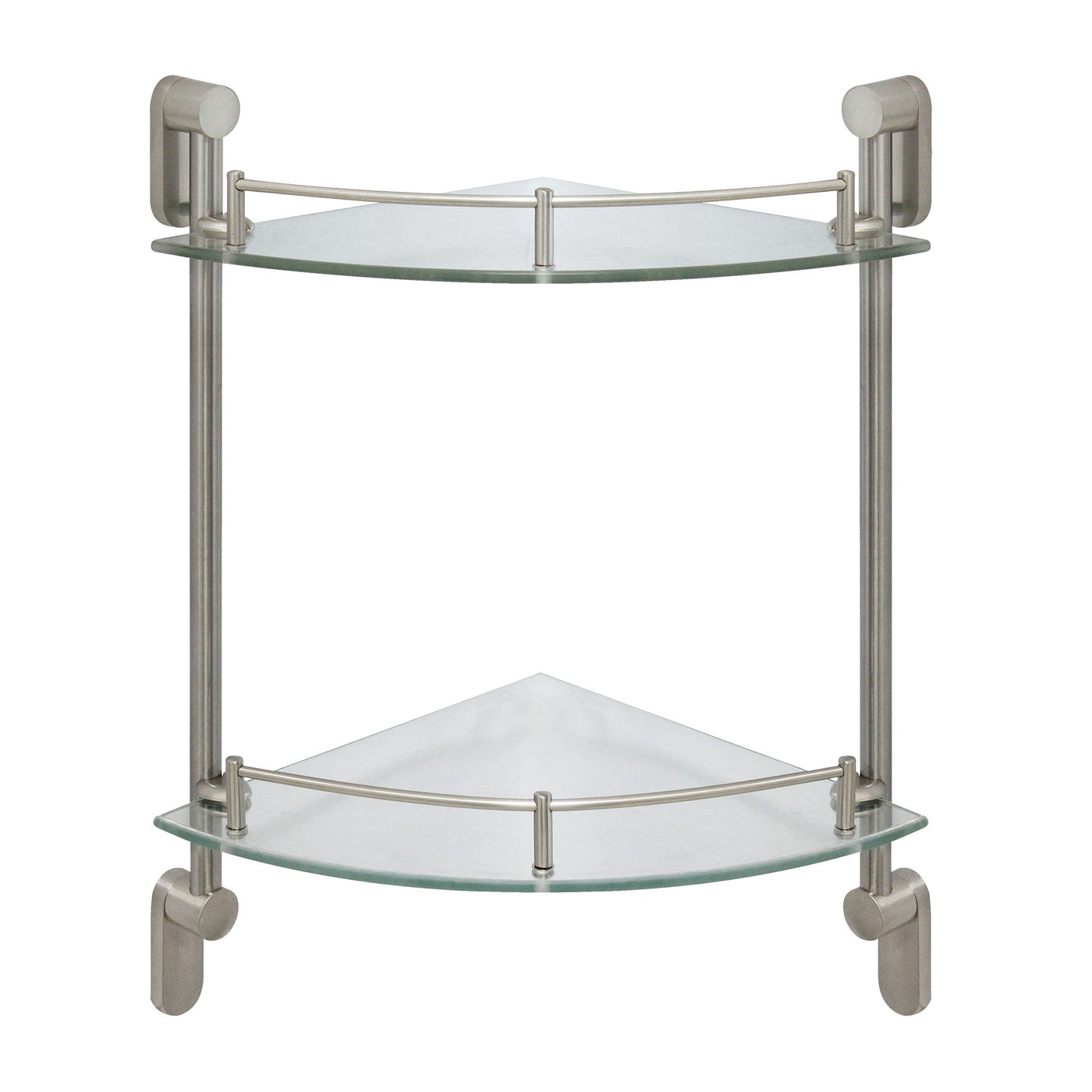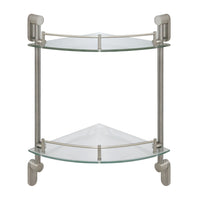 Modona Double Corner Glass Shelf With Pre-Installed Rail - Satin Nickel - Oval Series - 5 Year Warrantee