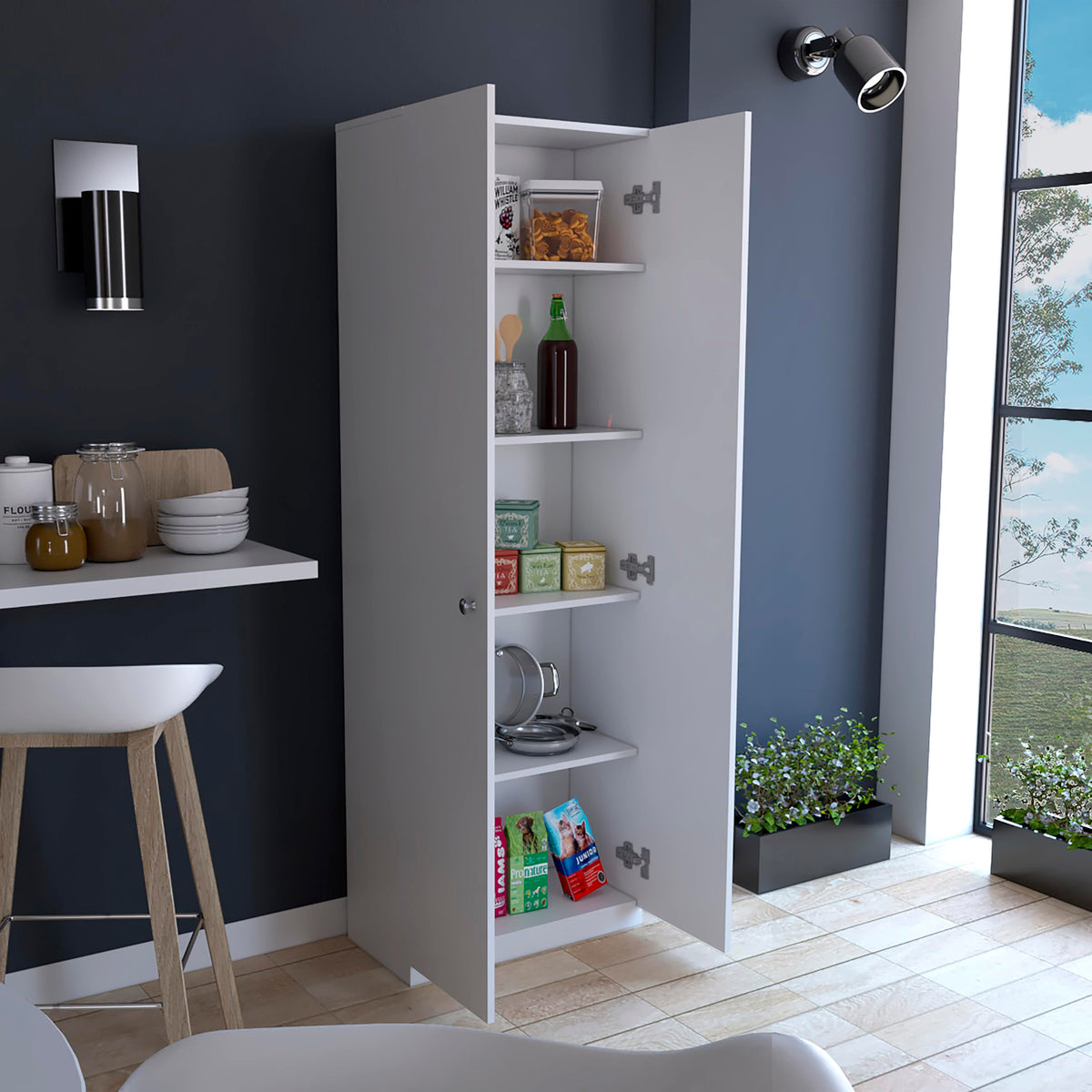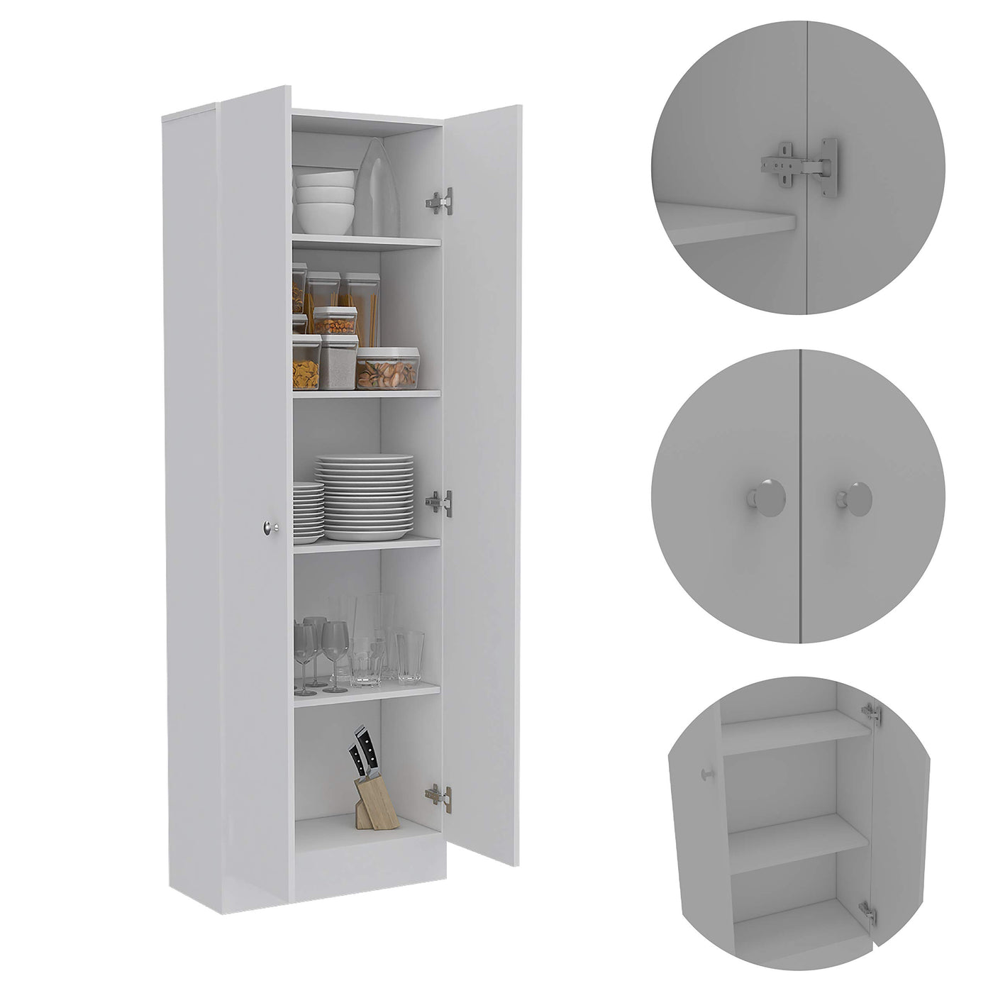 The Dakari Multistorage Cabinet is a versatile and stylish storage solution, ideal for any room needing extra space: kitchen, bedroom, living room, office, garage, or basement. With its durable espresso-black manufactured wood construction, it offers both functionality and elegance. Measuring 71" H x 23.6" W x 11.8" D, this cabinet features five spacious shelves behind two sleek doors, providing ample storage for all your essentials. The all-metal doorknobs and hinges enhance the overall quality and durability of the product. Key Features: Dimensions: 71" H x 23.6" W x 11.8" D Material: High-quality espresso-black manufactured wood Design: Modern and sleek, fits into any room decor Storage: Five internal shelves behind two doors Assembly: Ready to assemble with easy instructions Certifications: CARB Phase II and TSCA Title VI compliant Warranty: 1-year coverage on wooden parts and hardware Add the Dakari Multistorage Cabinet to your home for a blend of style and practicality, enhancing any space with organized storage.