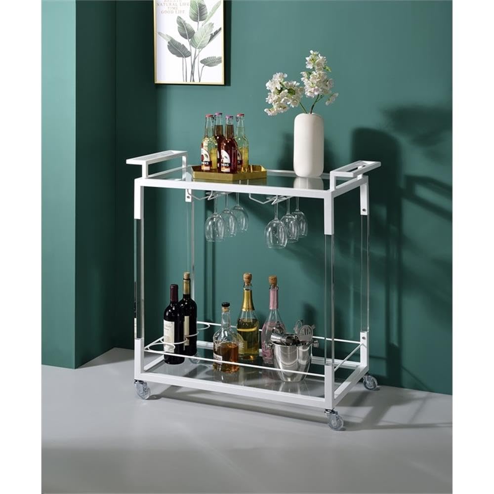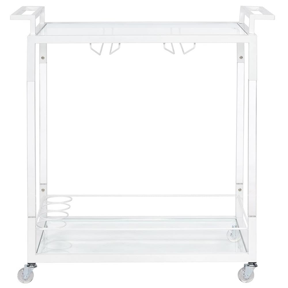 Progressive Furniture Luca Acrylic Iron w/Glass Bar Cart in Snow White & Clear